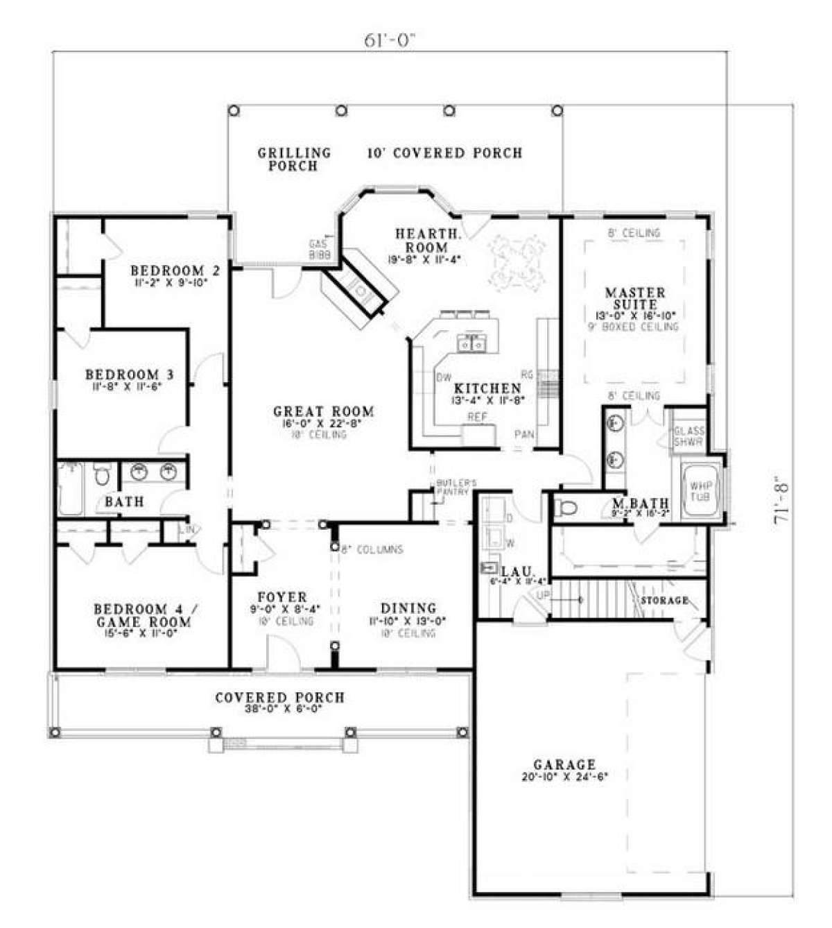S5-217 (110-00473) Это иностранный проект, для которого требуется адаптация под нормы, действующие в Российской Федерации. Вы видите проект дома в стиле Ранчо. В этом доме сочетаются черты сельской постройки и аскетичность лофта. Внутри жильцы смогут проводить время с максимальным комфортом. Обратим внимание, что сейчас на планировках все размеры представлены в футах. Для перевода в метры вам необходимо значение в футах умножить на 0,3048.