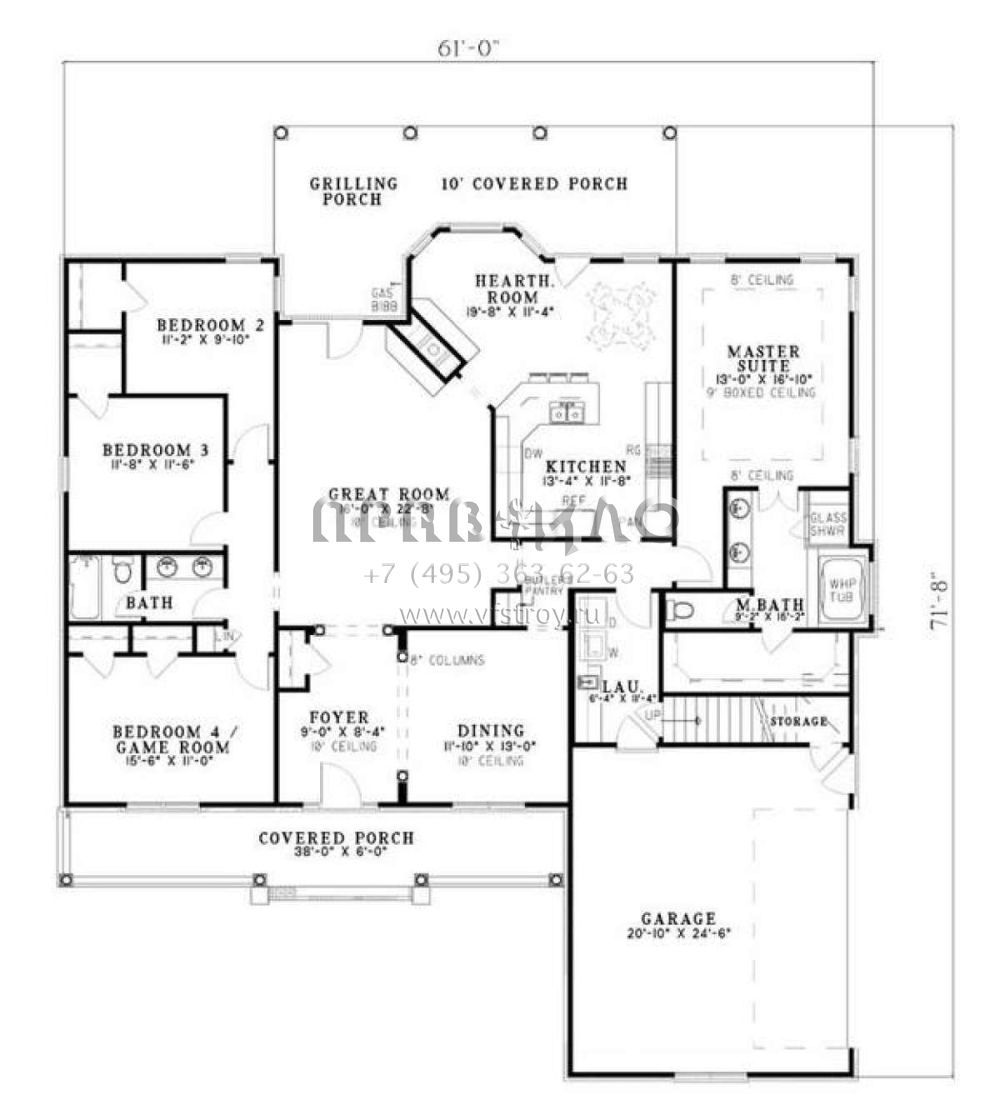 Поскольку этот проект разрабатывался иностранными архитекторами, для строительства дома требуется переработка проекта под действующие в России нормы. Данные визуализации проекта представлены для ознакомления с концепцией проекта. Проект разработан американским архитектурным бюро и представлен America's Best House Plans.
