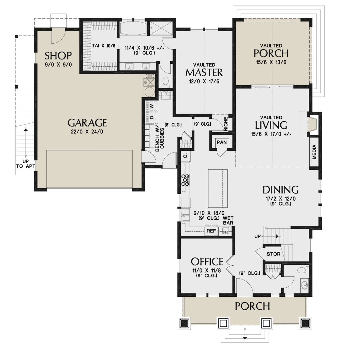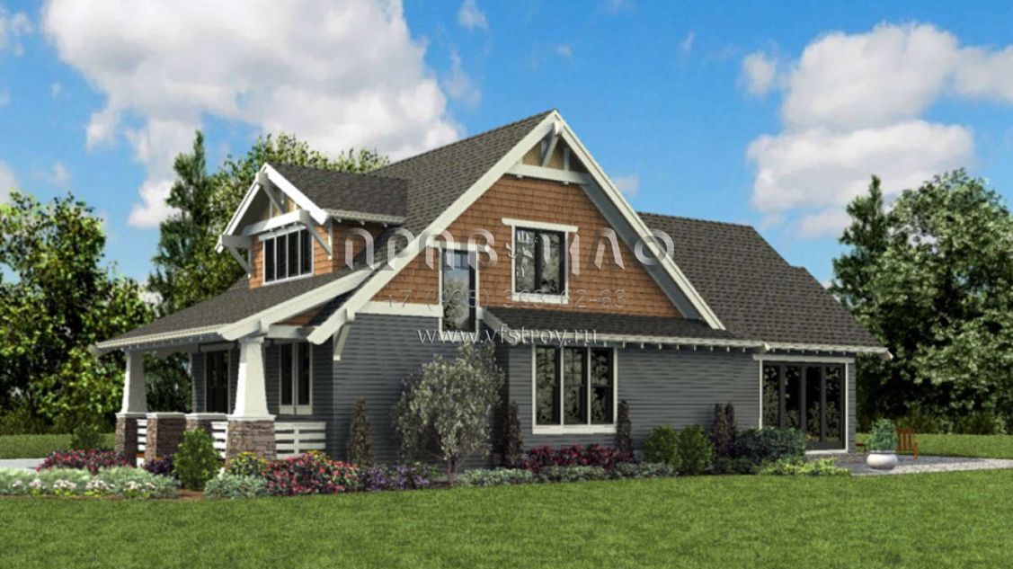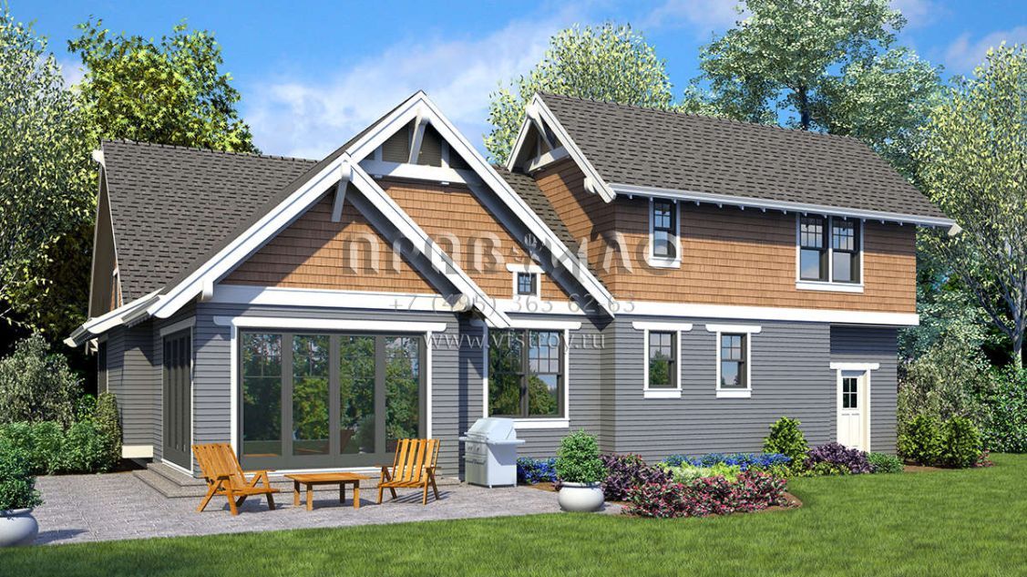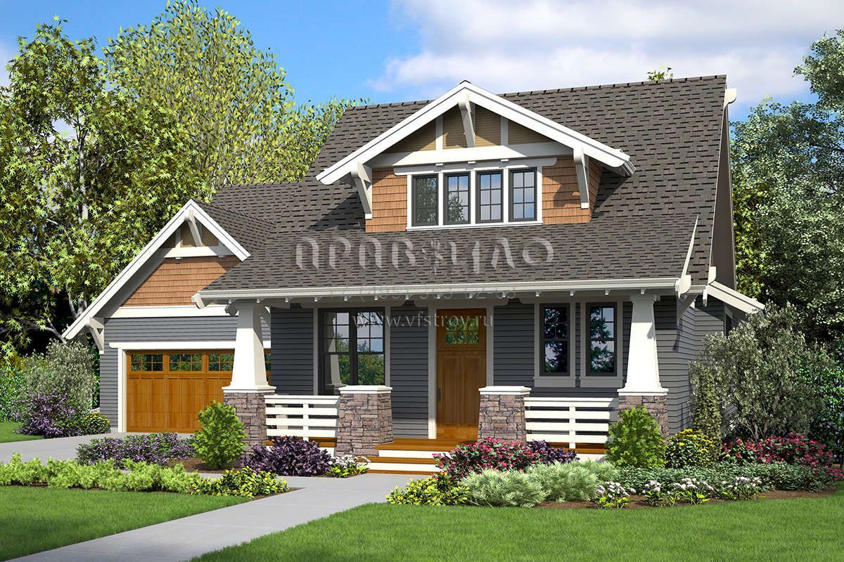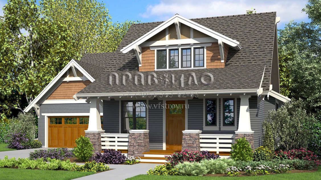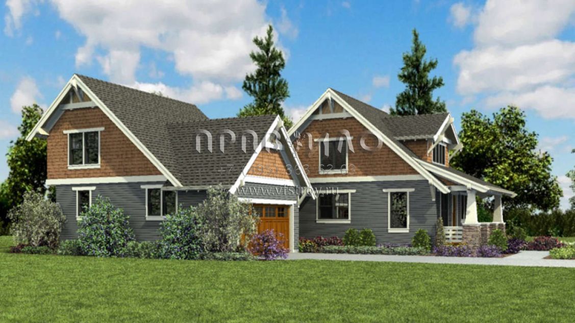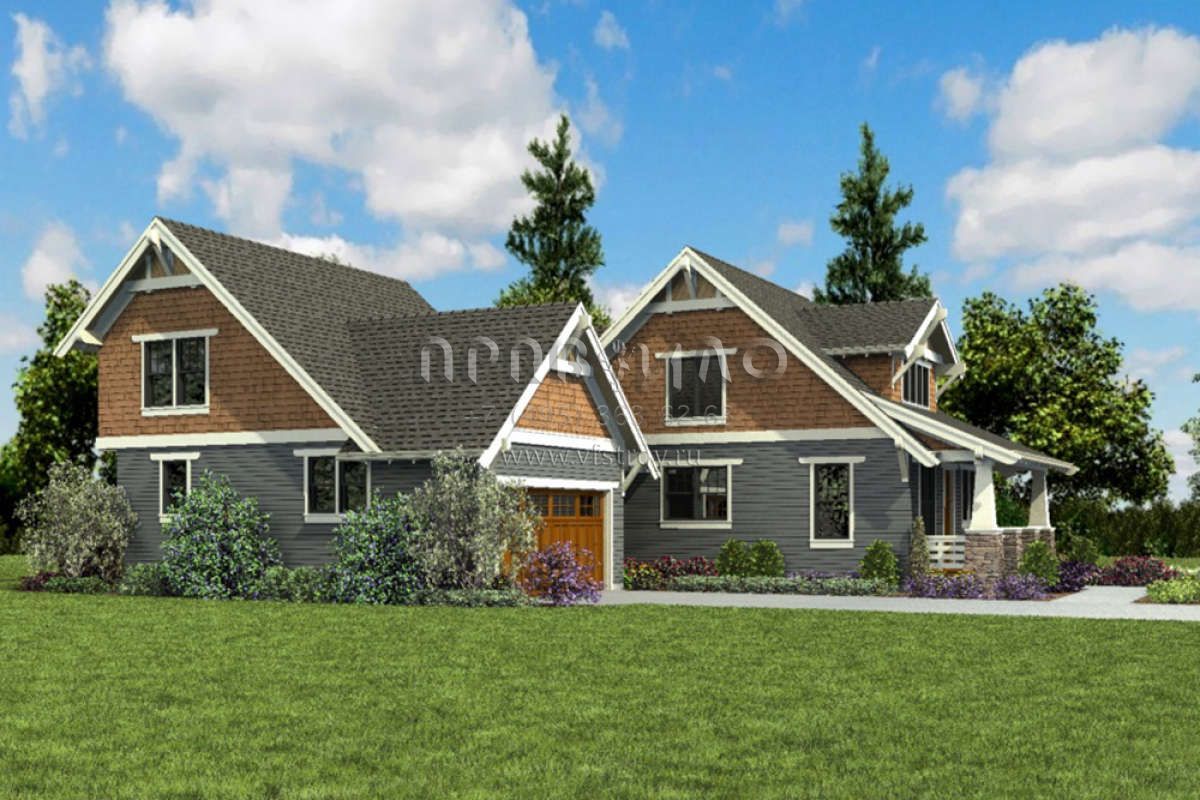 Проект двухэтажного дома с гаражом на две машины в стиле Ранчо S5-217 (2559-00835)