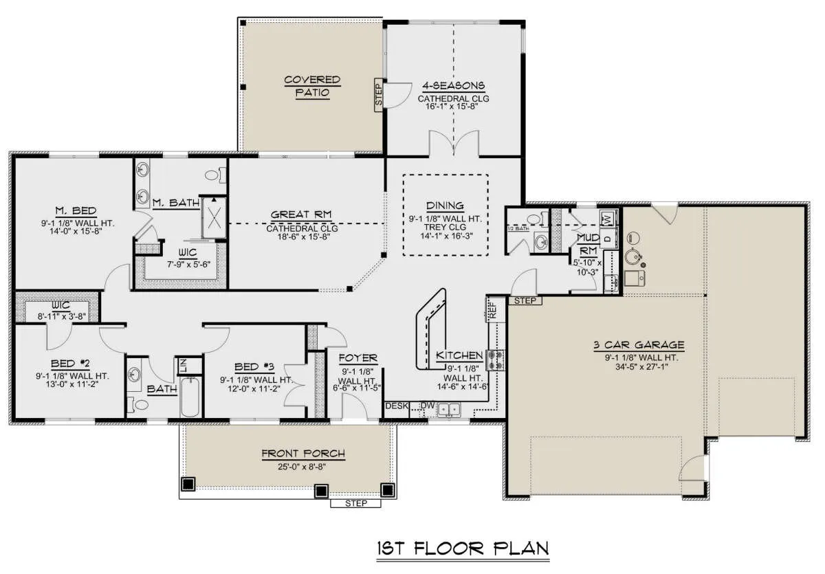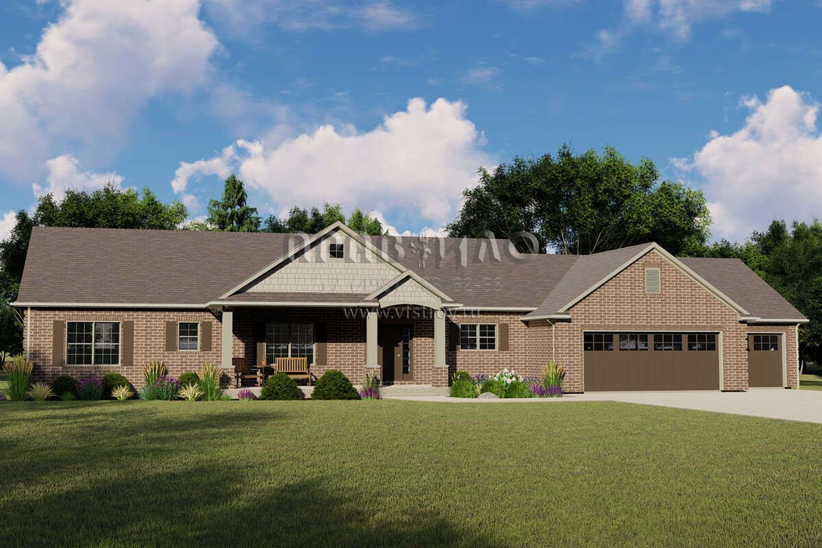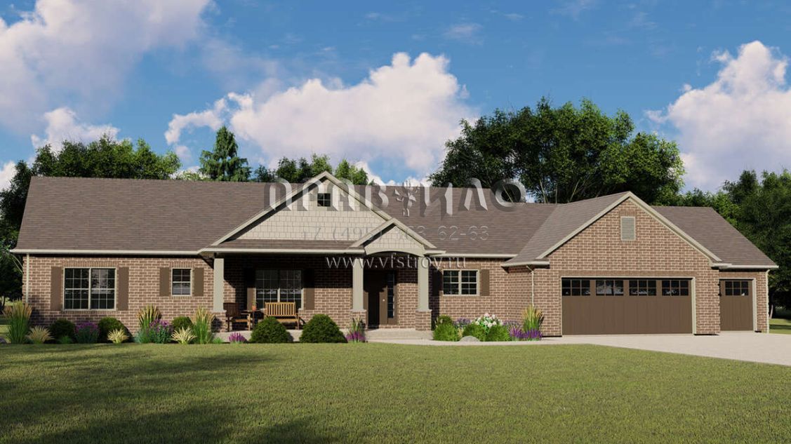 Проект одноэтажного дома с гаражом на три и более машин в американском стиле S5-217 (5032-00124)