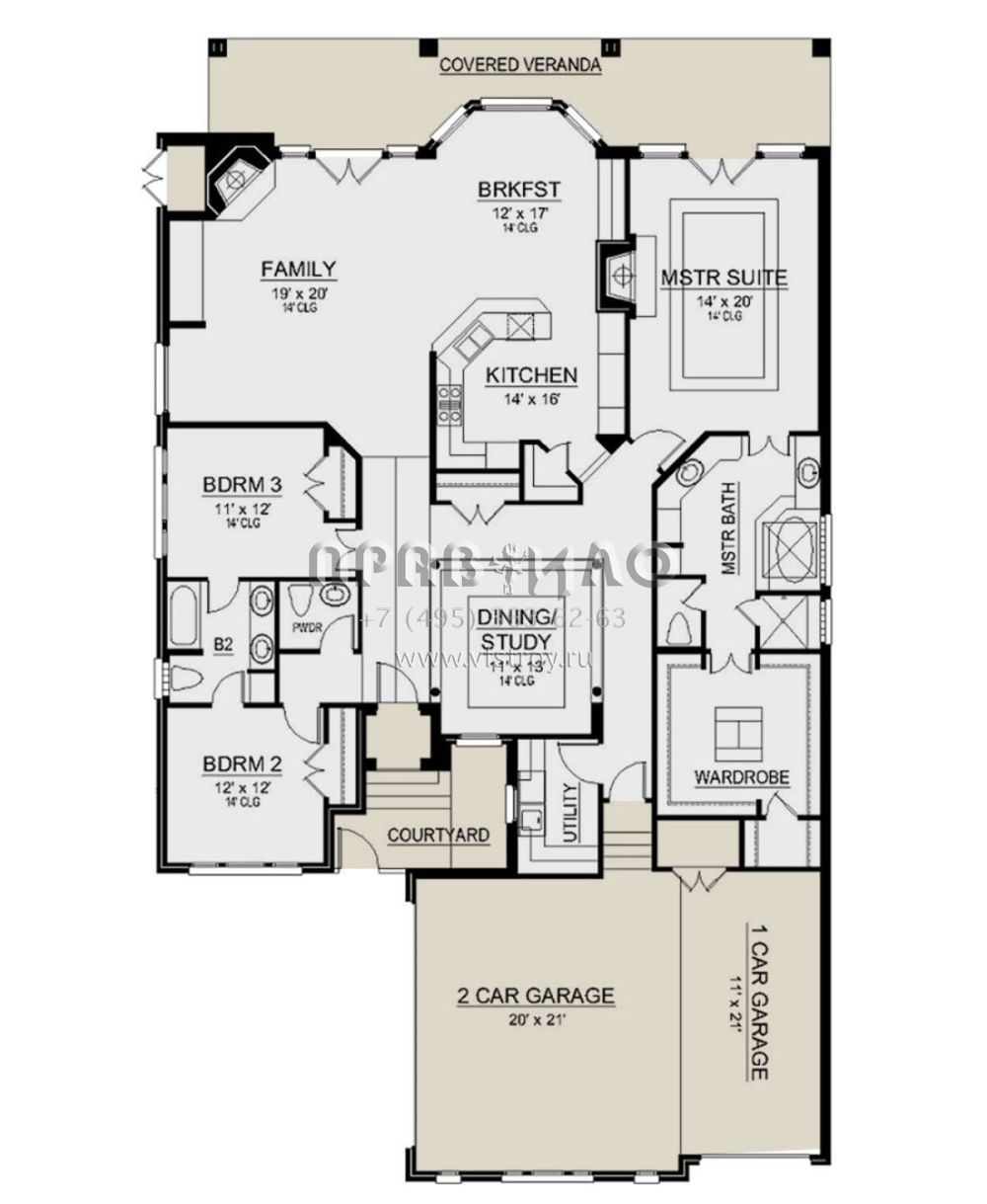 Поскольку этот проект разрабатывался иностранными архитекторами, для строительства дома требуется переработка проекта под действующие в России нормы. Данные визуализации проекта представлены для ознакомления с концепцией проекта. Проект разработан американским архитектурным бюро и представлен America's Best House Plans.