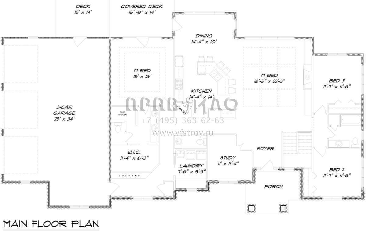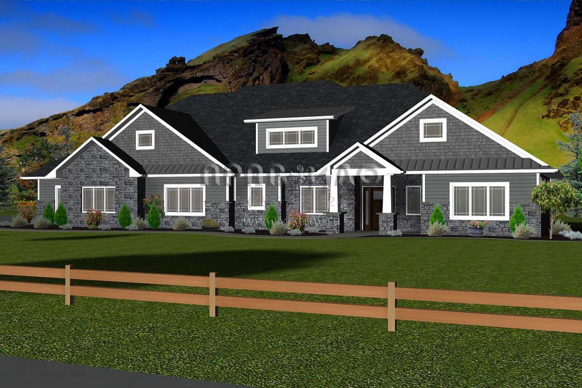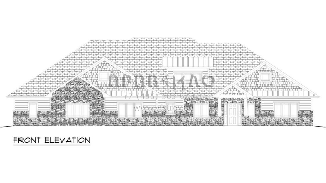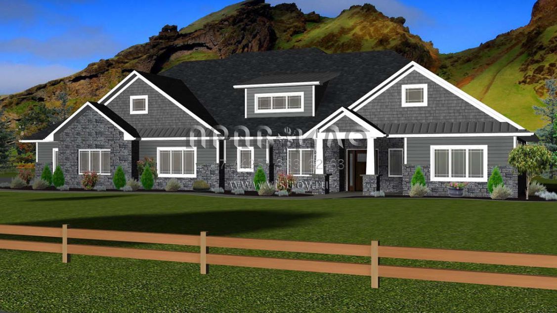 Проект одноэтажного дома с гаражом на три и более машин в стиле Ранчо S5-217 (5678-00014)
