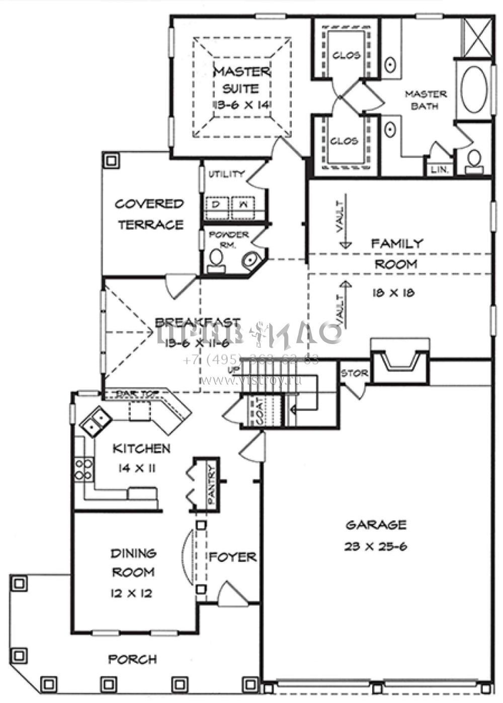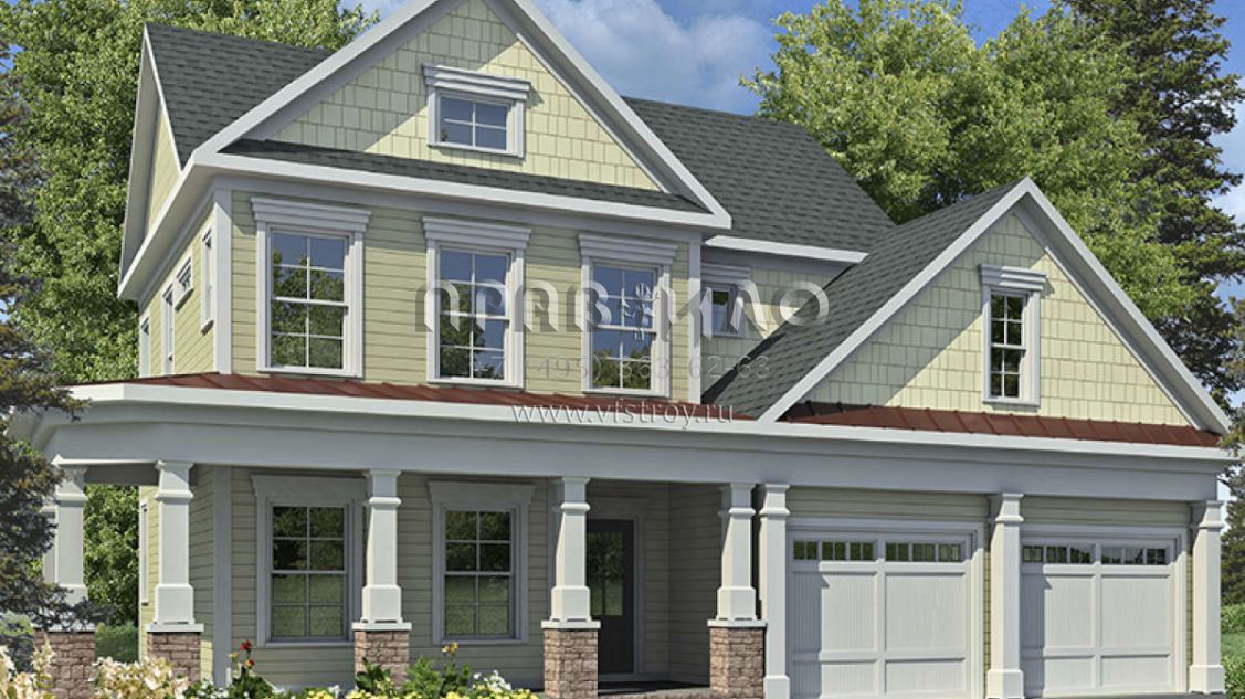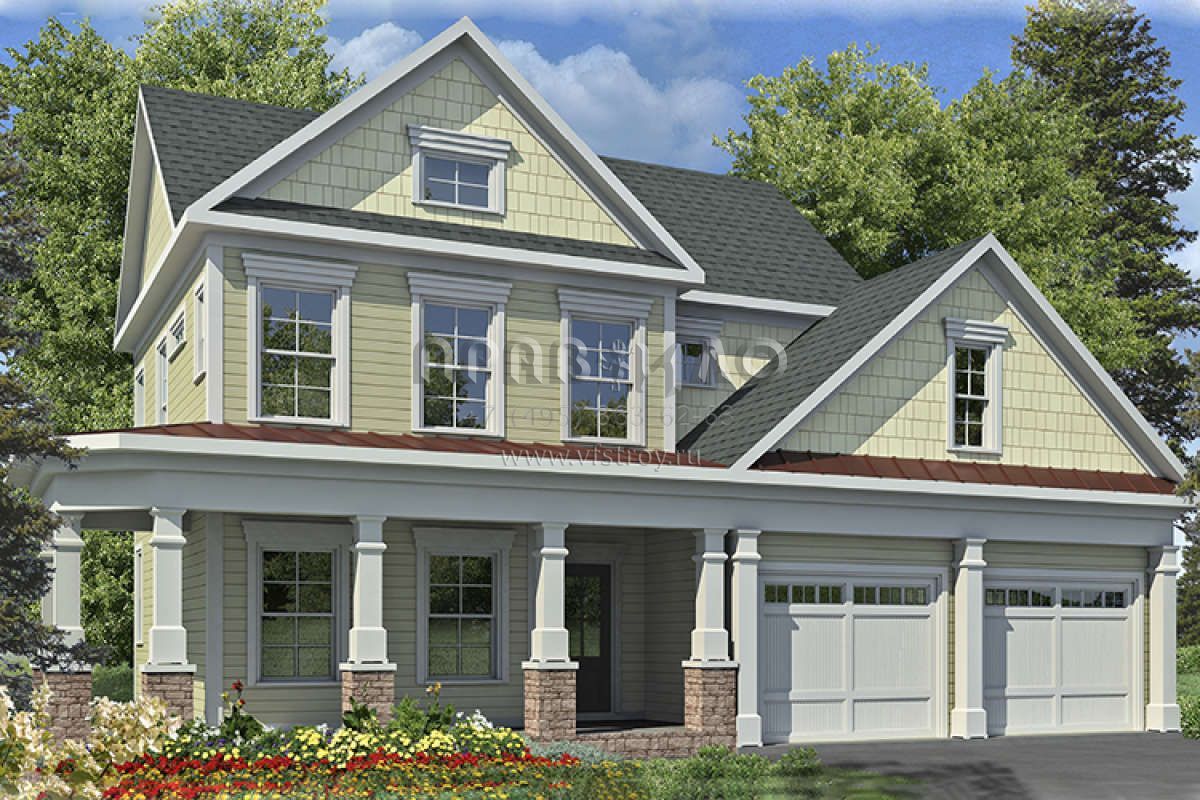 Проект двухэтажного дома с гаражом на две машины в стиле Ранчо S5-217 (6082-00012)