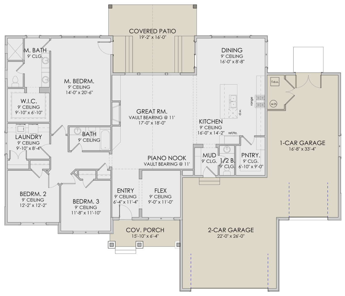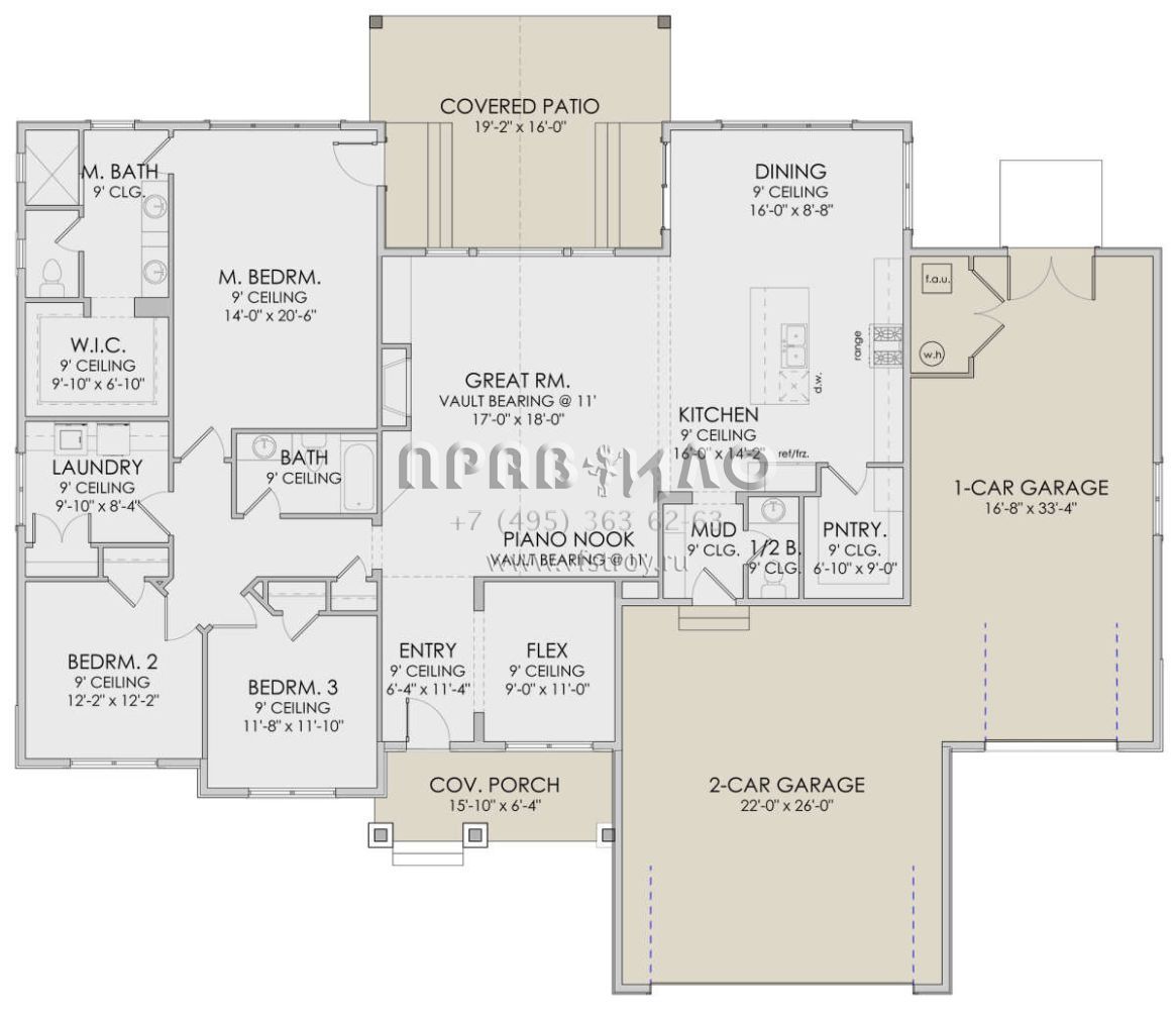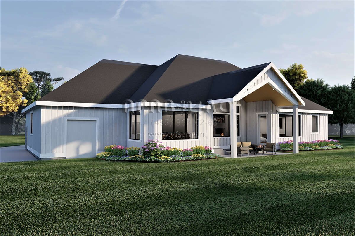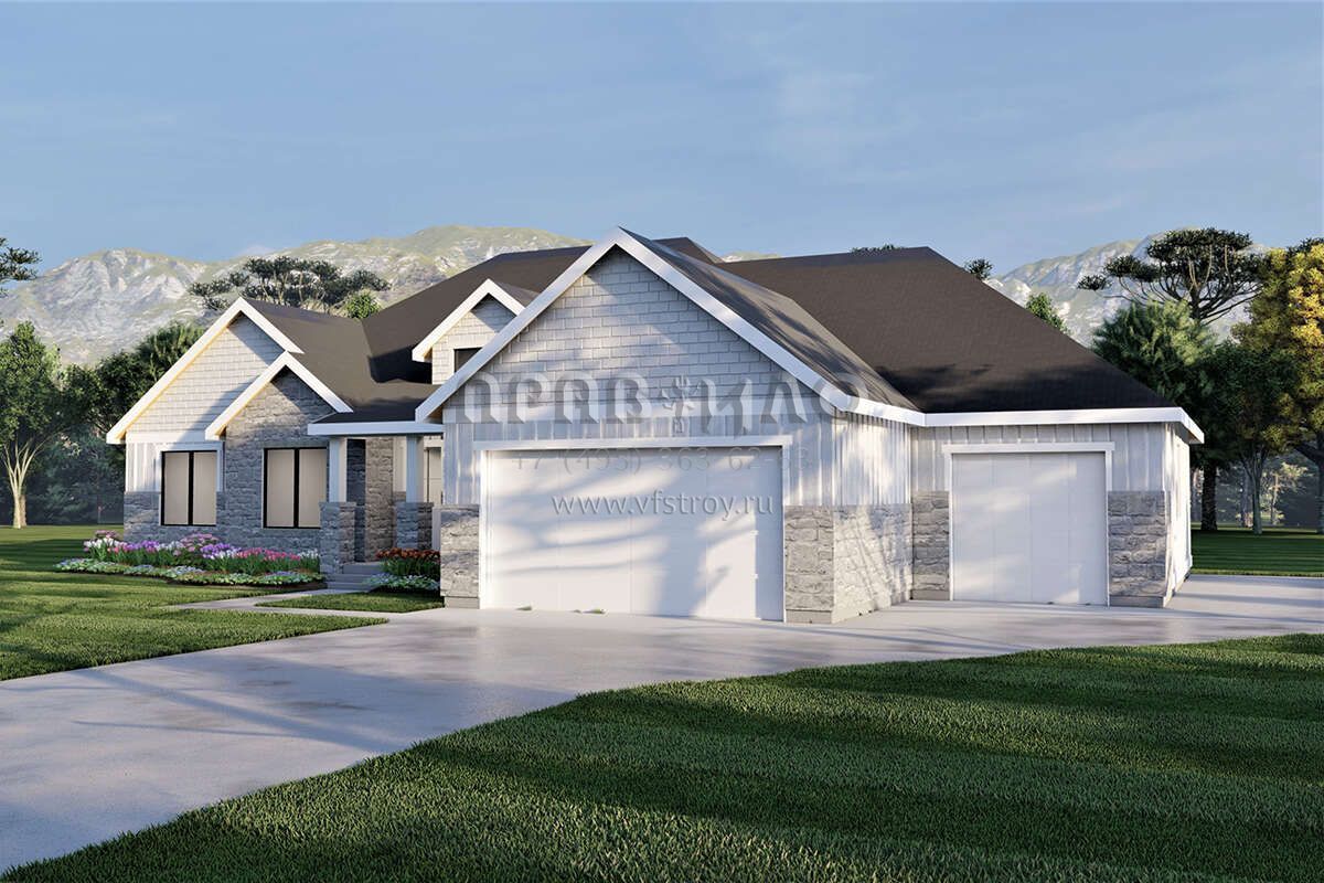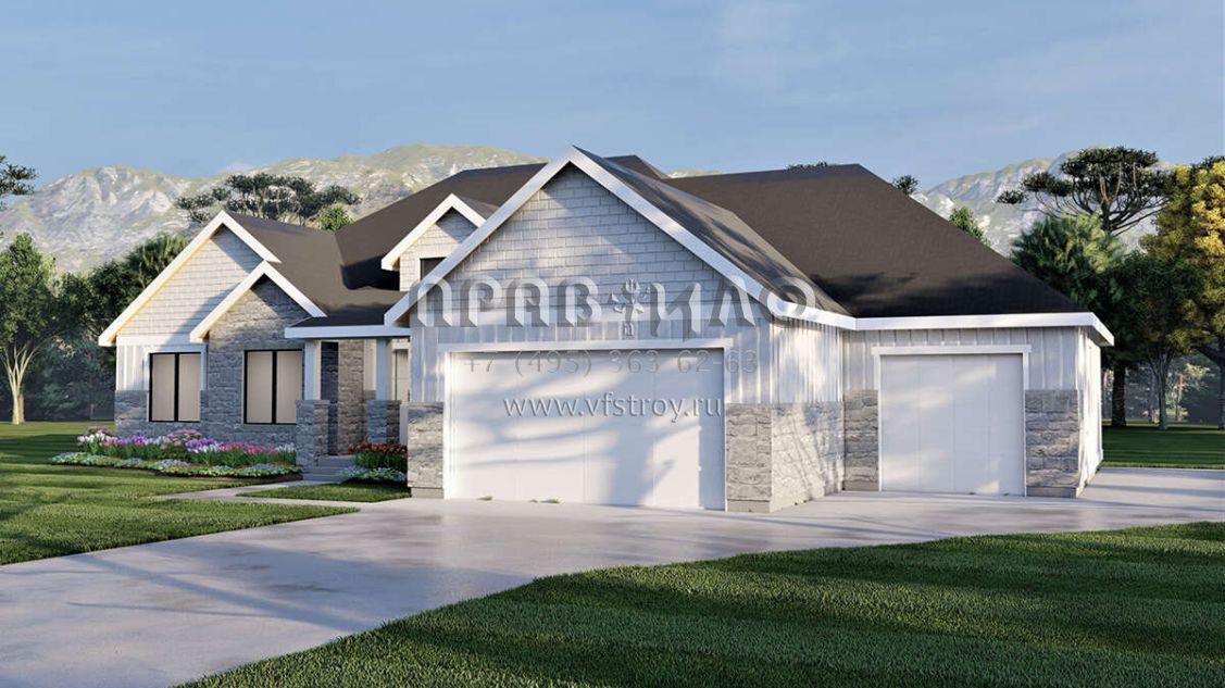 Проект одноэтажного дома с гаражом на три и более машин в американском стиле S5-217 (6422-00045)