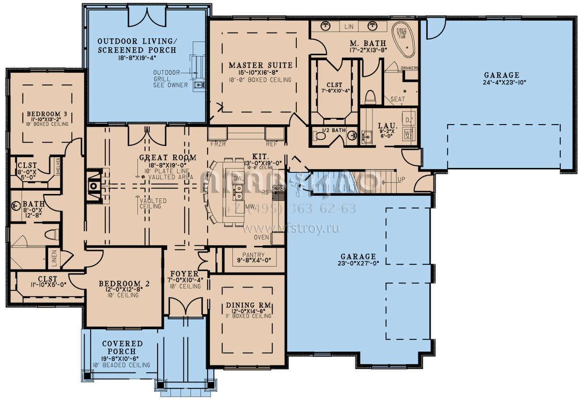 Поскольку этот проект разрабатывался иностранными архитекторами, для строительства дома требуется переработка проекта под действующие в России нормы. Данные визуализации проекта представлены для ознакомления с концепцией проекта. Проект разработан американским архитектурным бюро и представлен America's Best House Plans.