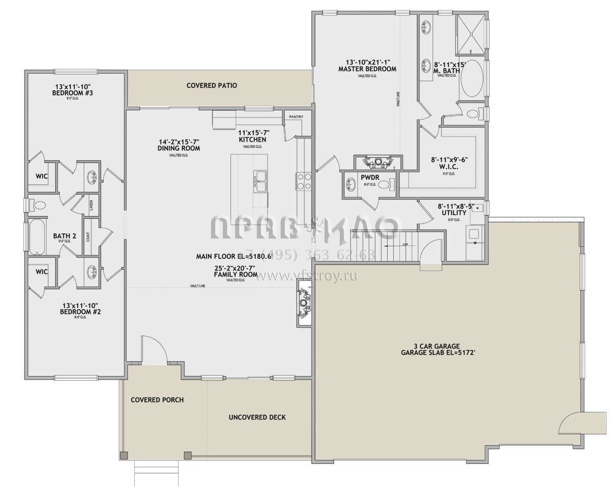 Поскольку этот проект разрабатывался иностранными архитекторами, для строительства дома требуется переработка проекта под действующие в России нормы. Данные визуализации проекта представлены для ознакомления с концепцией проекта. Проект разработан американским архитектурным бюро и представлен America's Best House Plans.