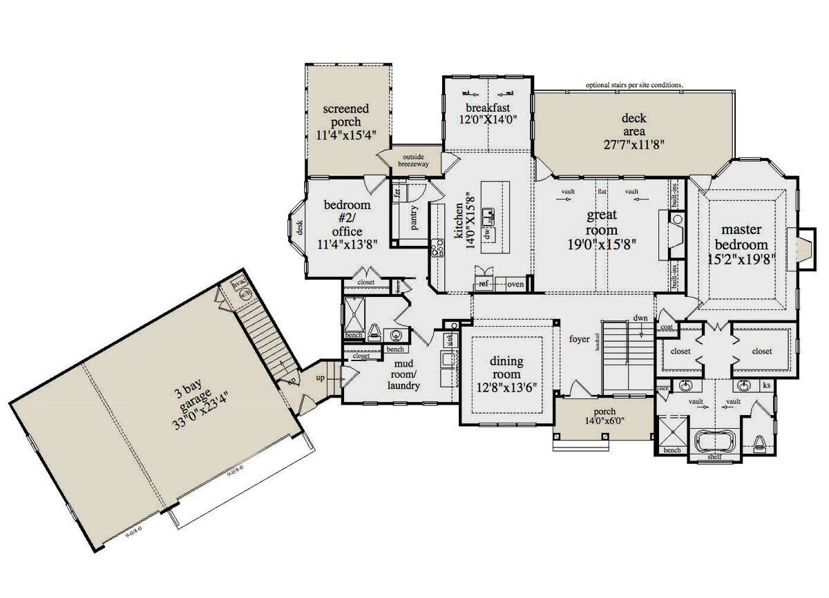 Проект одноэтажного дома с гаражом на три и более машин в американском стиле S5-217 (957-00098)