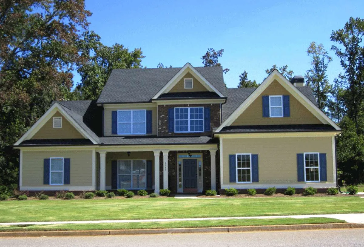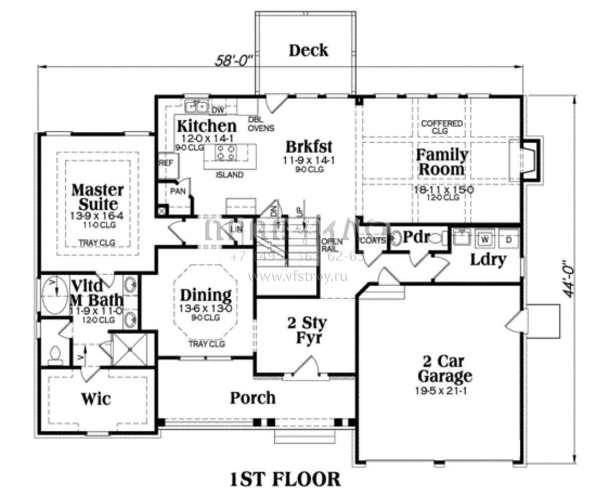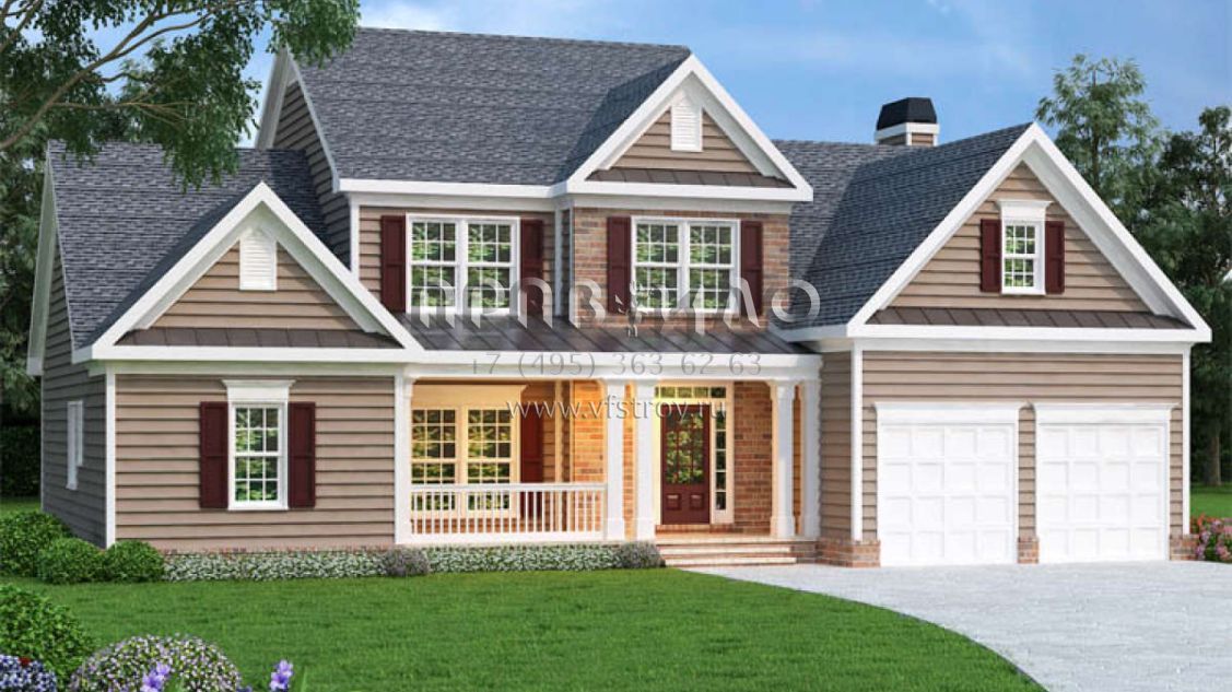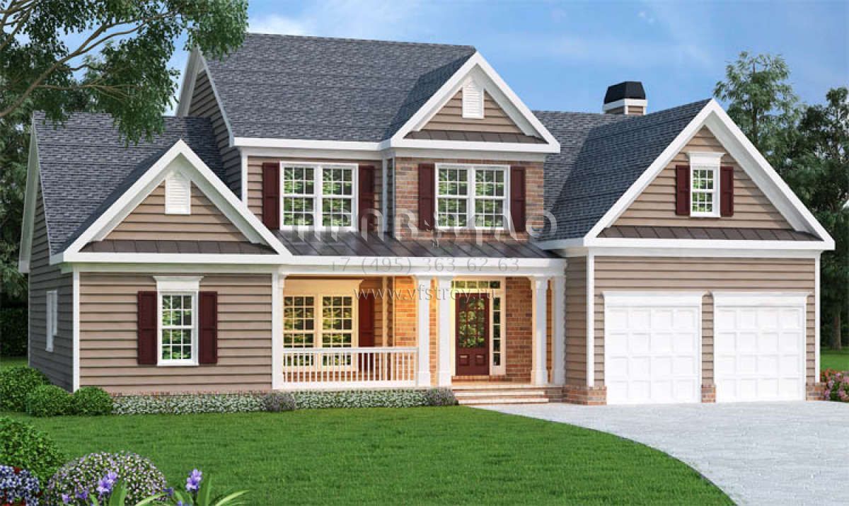 Проект двухэтажного дома с гаражом на две машины в стиле Ранчо S5-218 (009-00048)