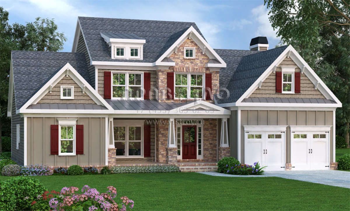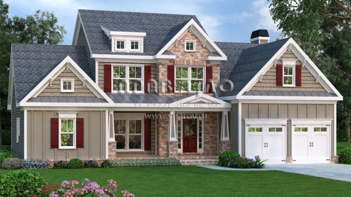 Проект двухэтажного дома с гаражом на две машины в стиле Ранчо S5-218 (009-00061)