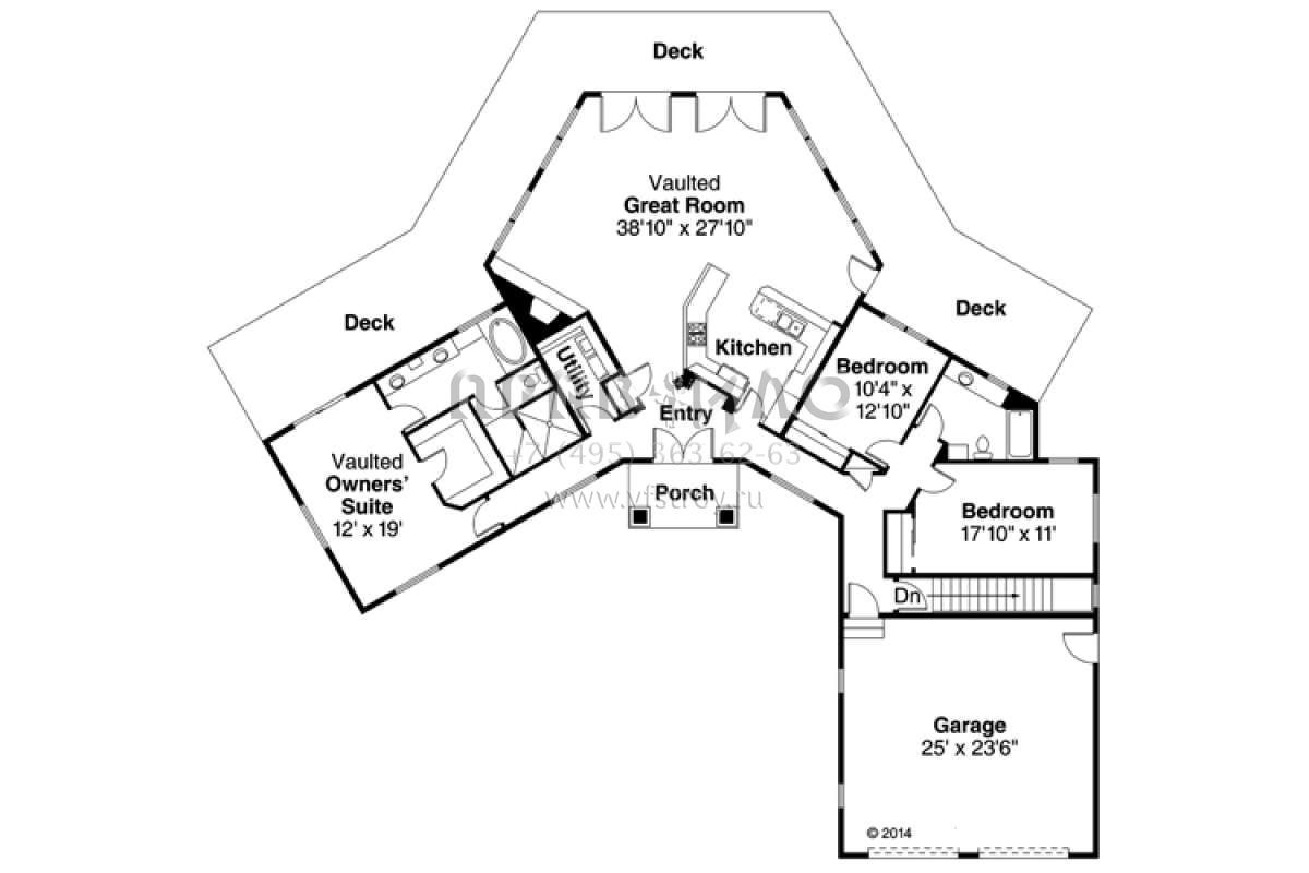 Проект одноэтажного дома с гаражом на две машины в американском стиле S5-218 (035-00688)
