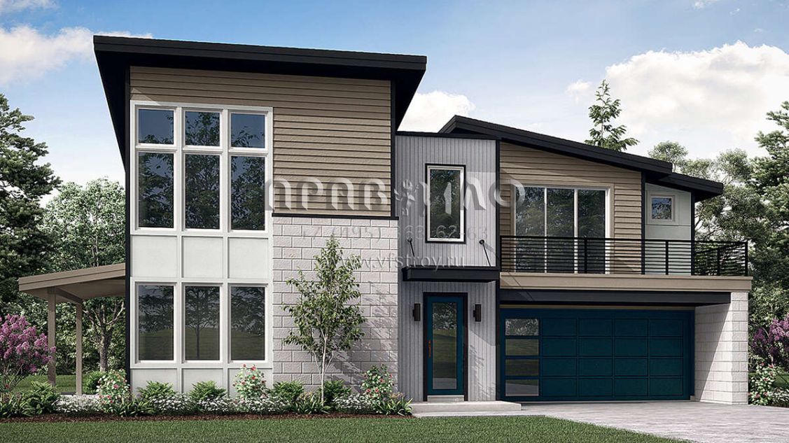 Проект двухэтажного дома с гаражом на две машины в современном стиле S5-218 (035-01069)