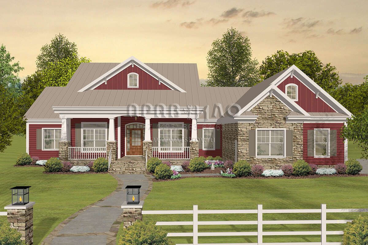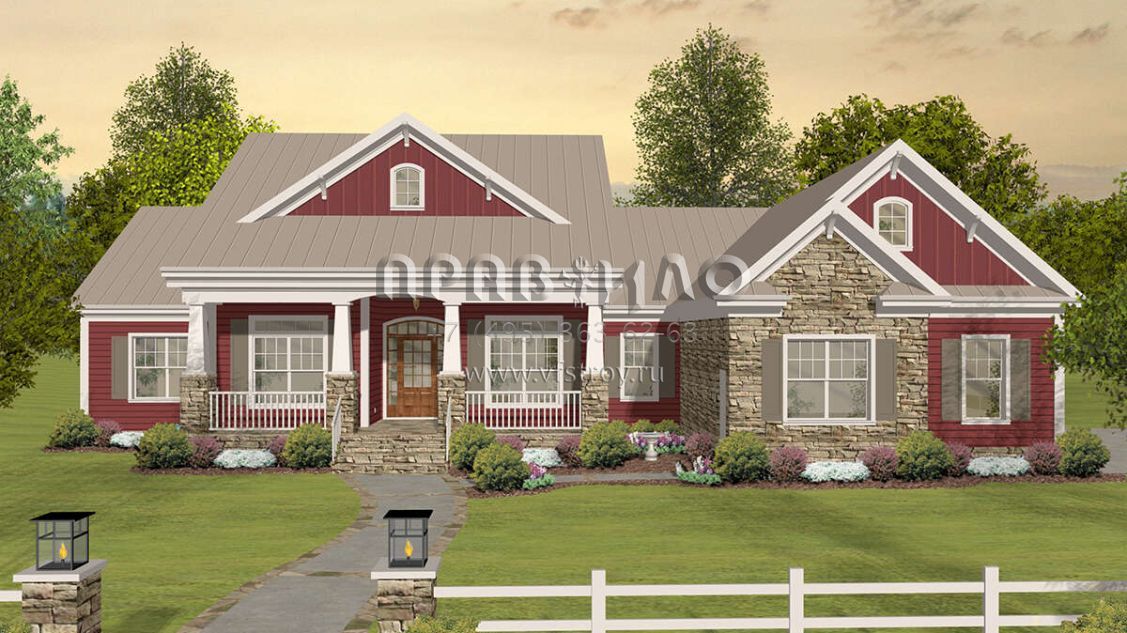Проект одноэтажного дома с гаражом на три и более машин в стиле Ранчо S5-218 (036-00269)