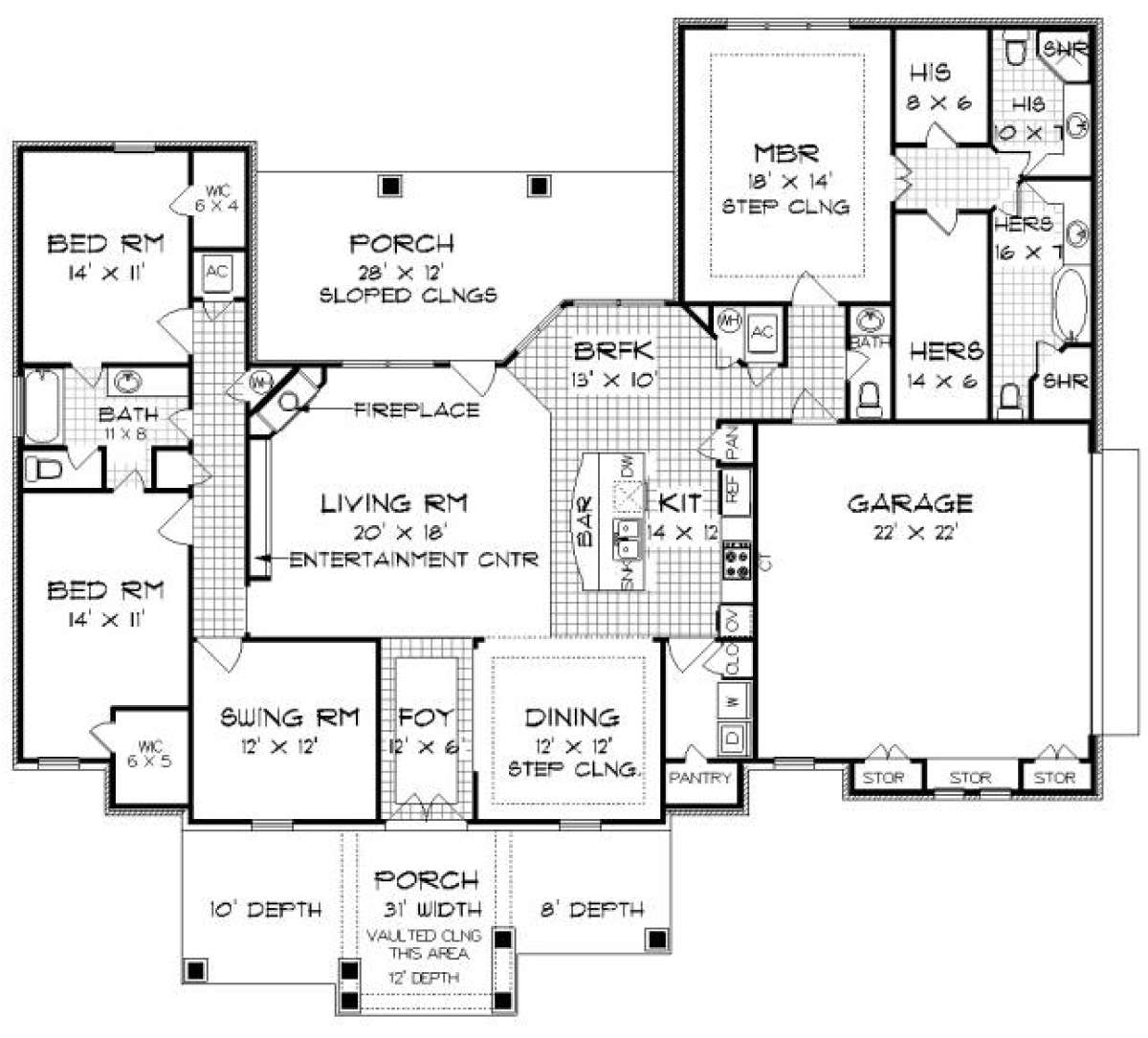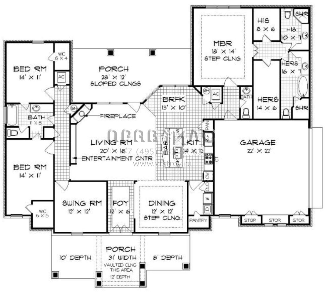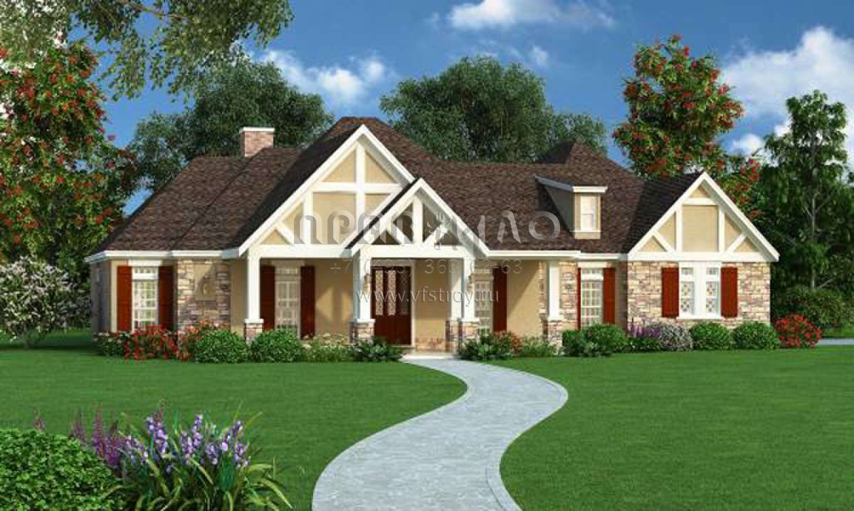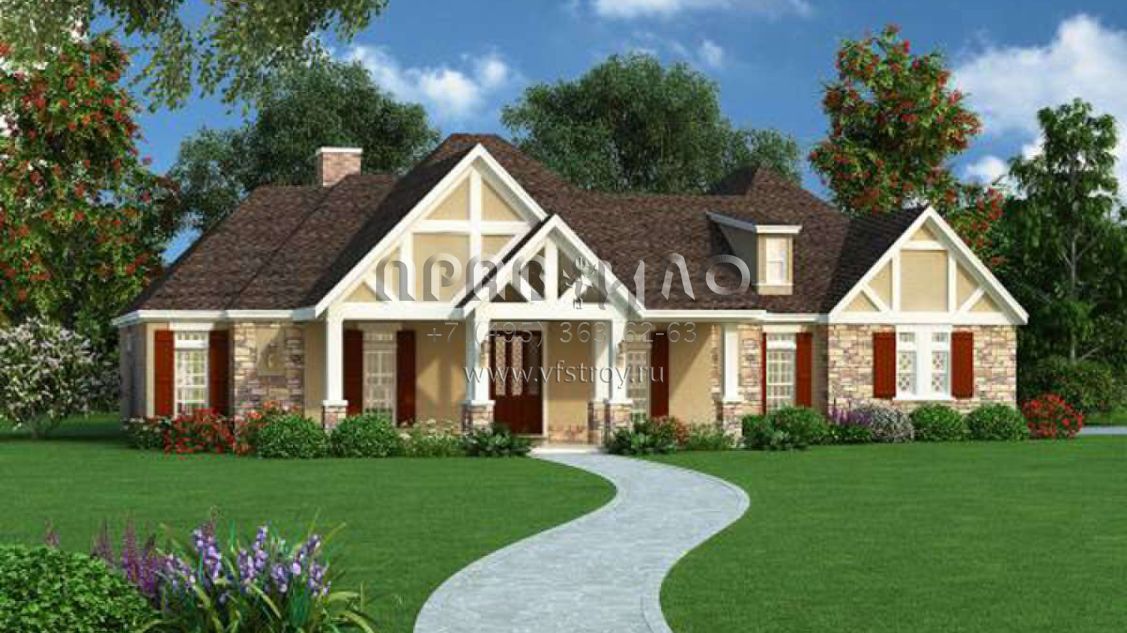 Проект одноэтажного дома с гаражом на две машины в американском стиле S5-218 (048-00242)