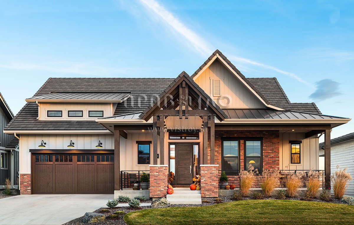 Проект одноэтажного дома с гаражом на две машины в американском стиле S5-218 (5631-00168)