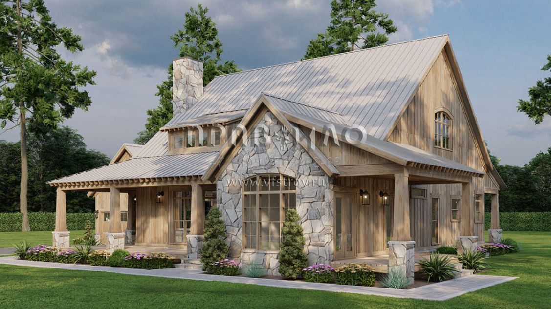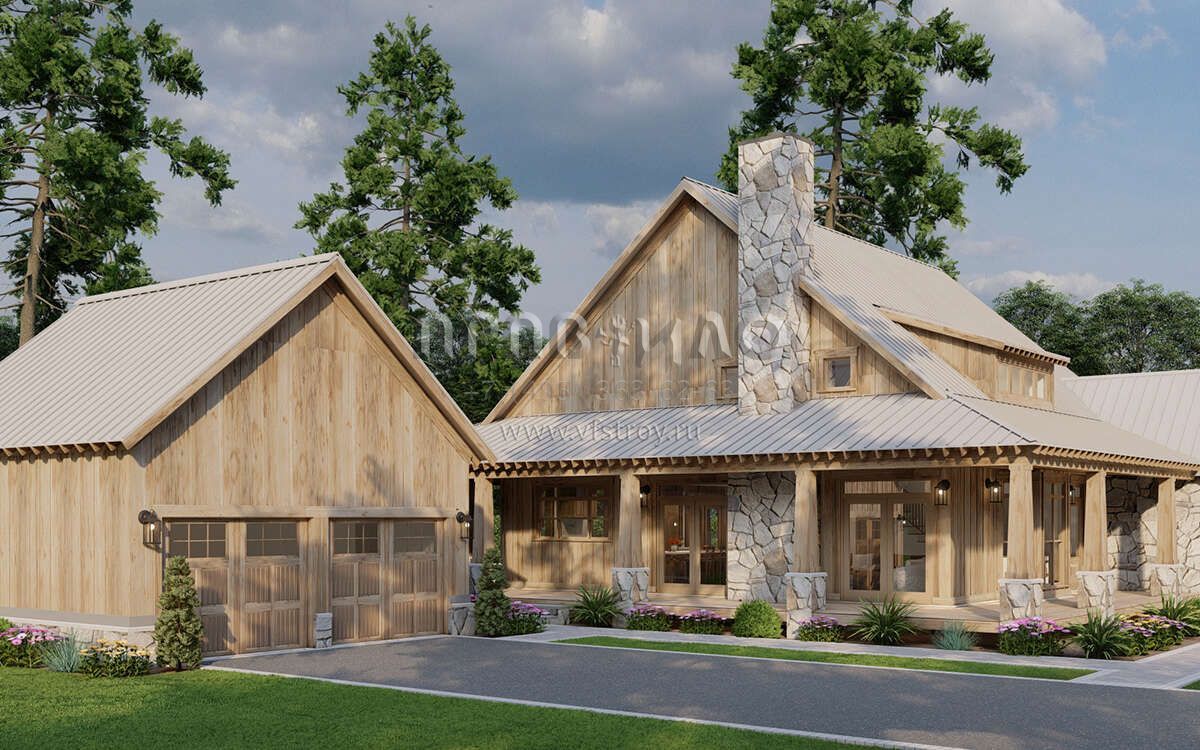 Проект двухэтажного дома с гаражом на две машины в американском стиле S5-218 (8318-00365)