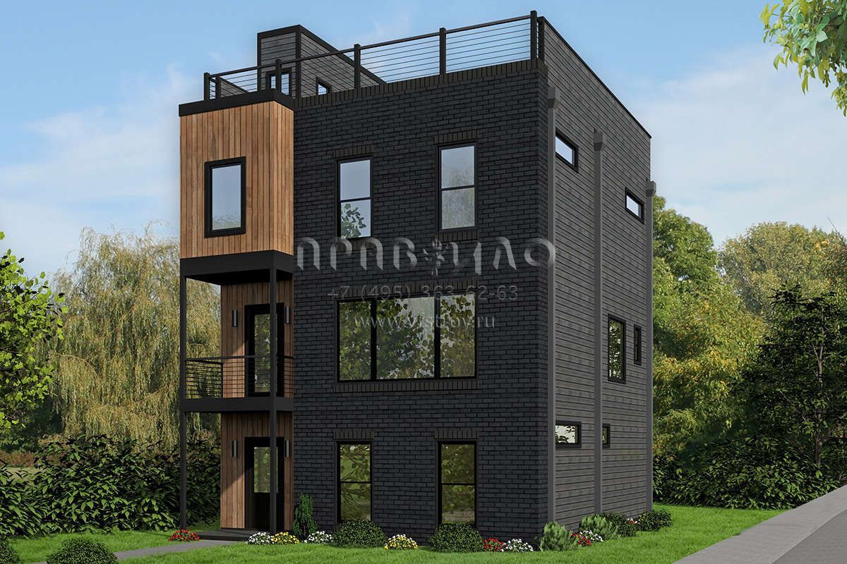 Проект трехэтажного дома с гаражом на одну машину в современном стиле S5-218 (940-00122)