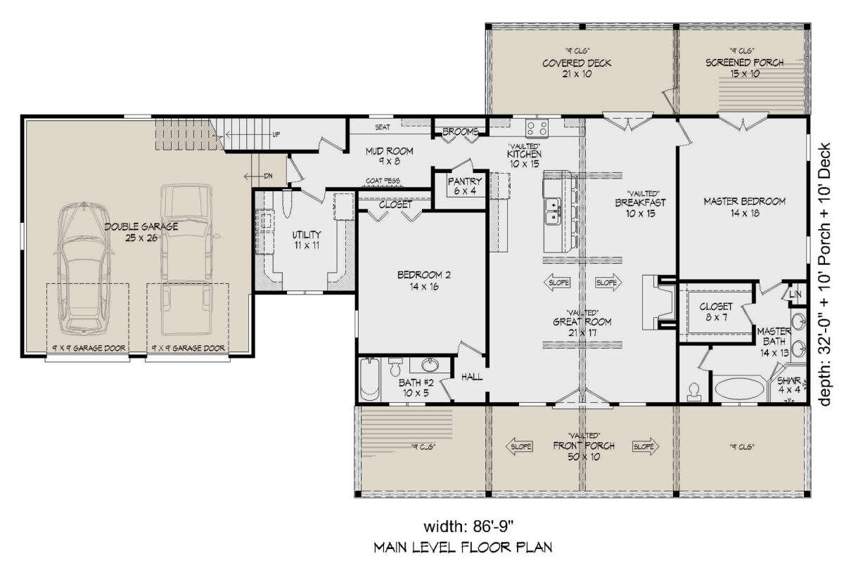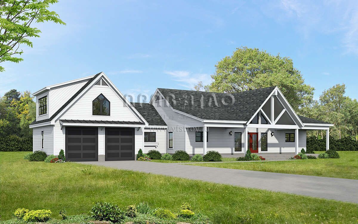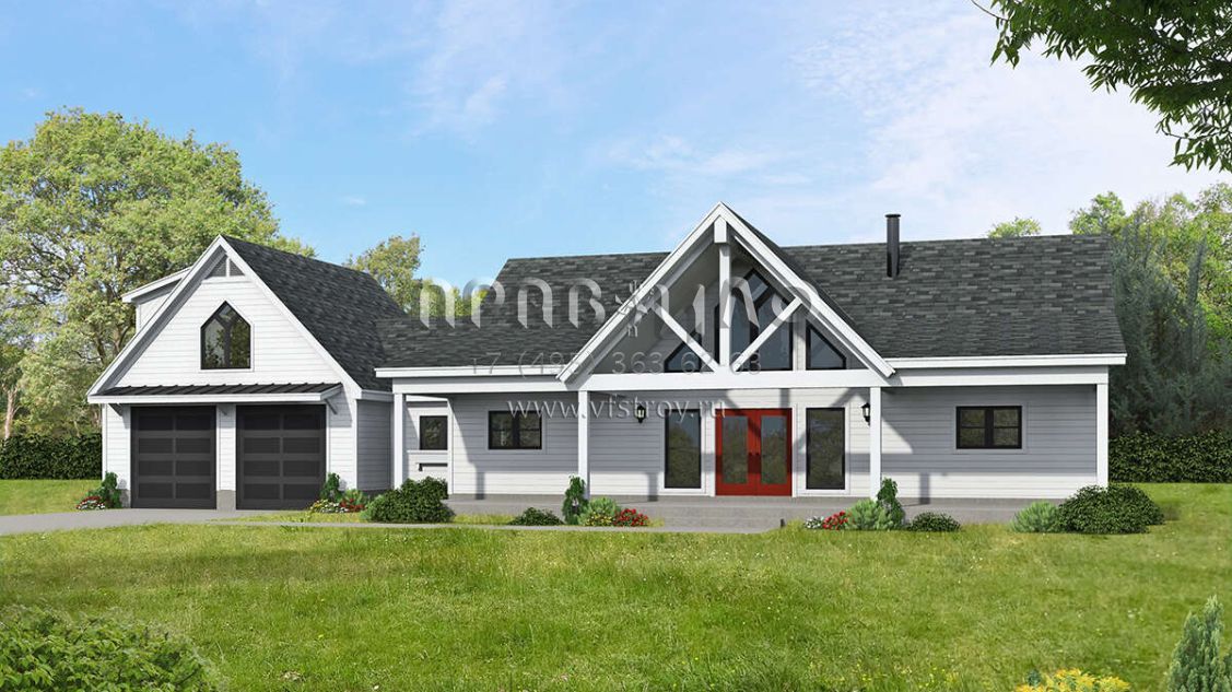 Проект двухэтажного дома с гаражом на две машины в стиле Ранчо S5-218 (940-00850)