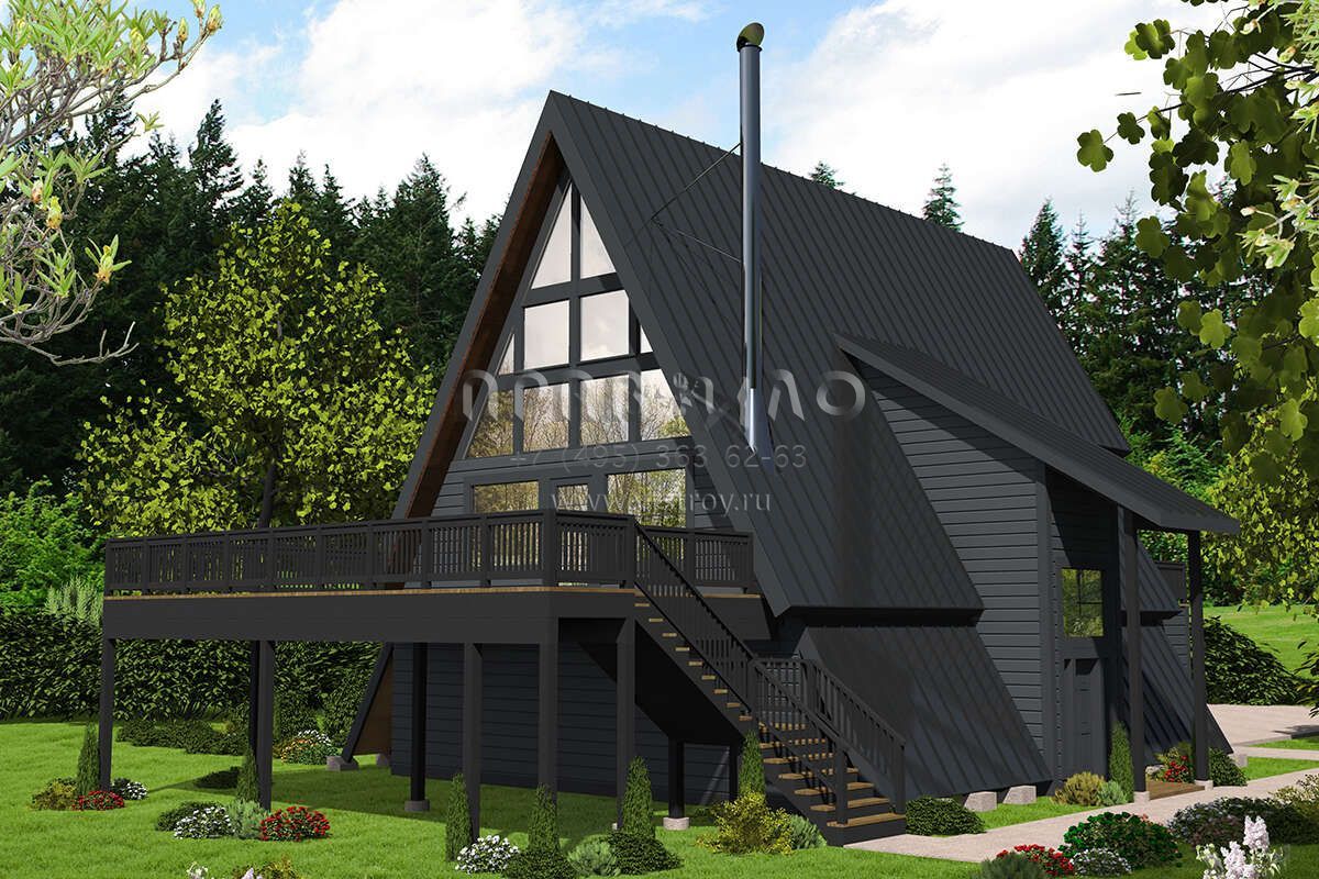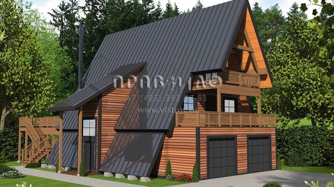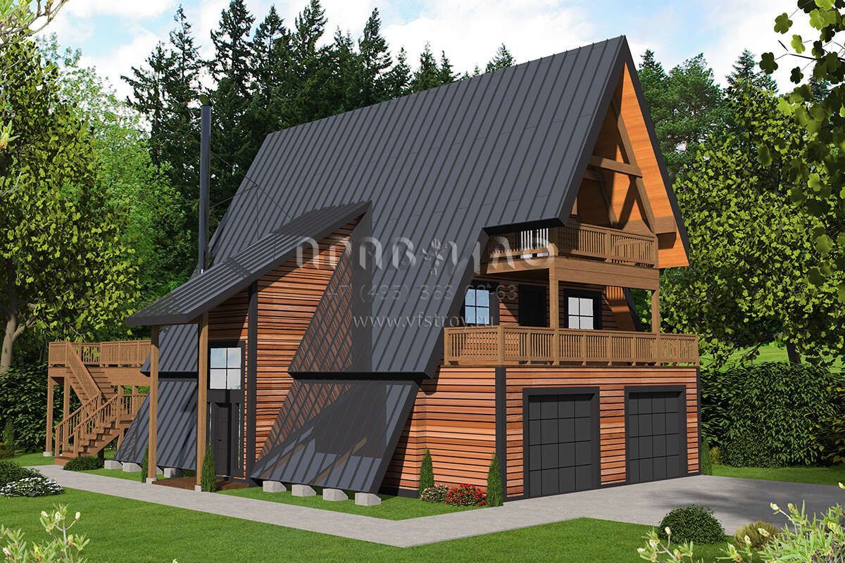 Проект двухэтажного дома с гаражом на две машины в стиле Дом-шалаш S5-219 (039-00723)