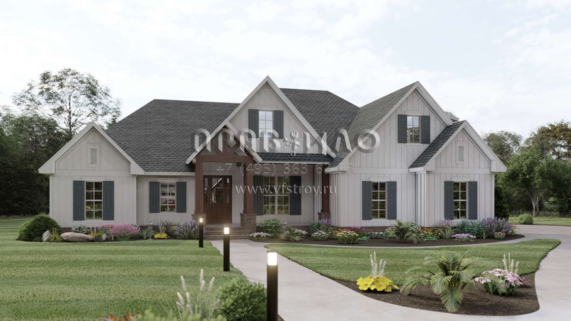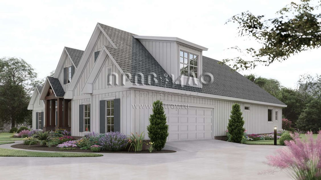 Проект одноэтажного дома с гаражом на две машины в американском стиле S5-219 (041-00198)