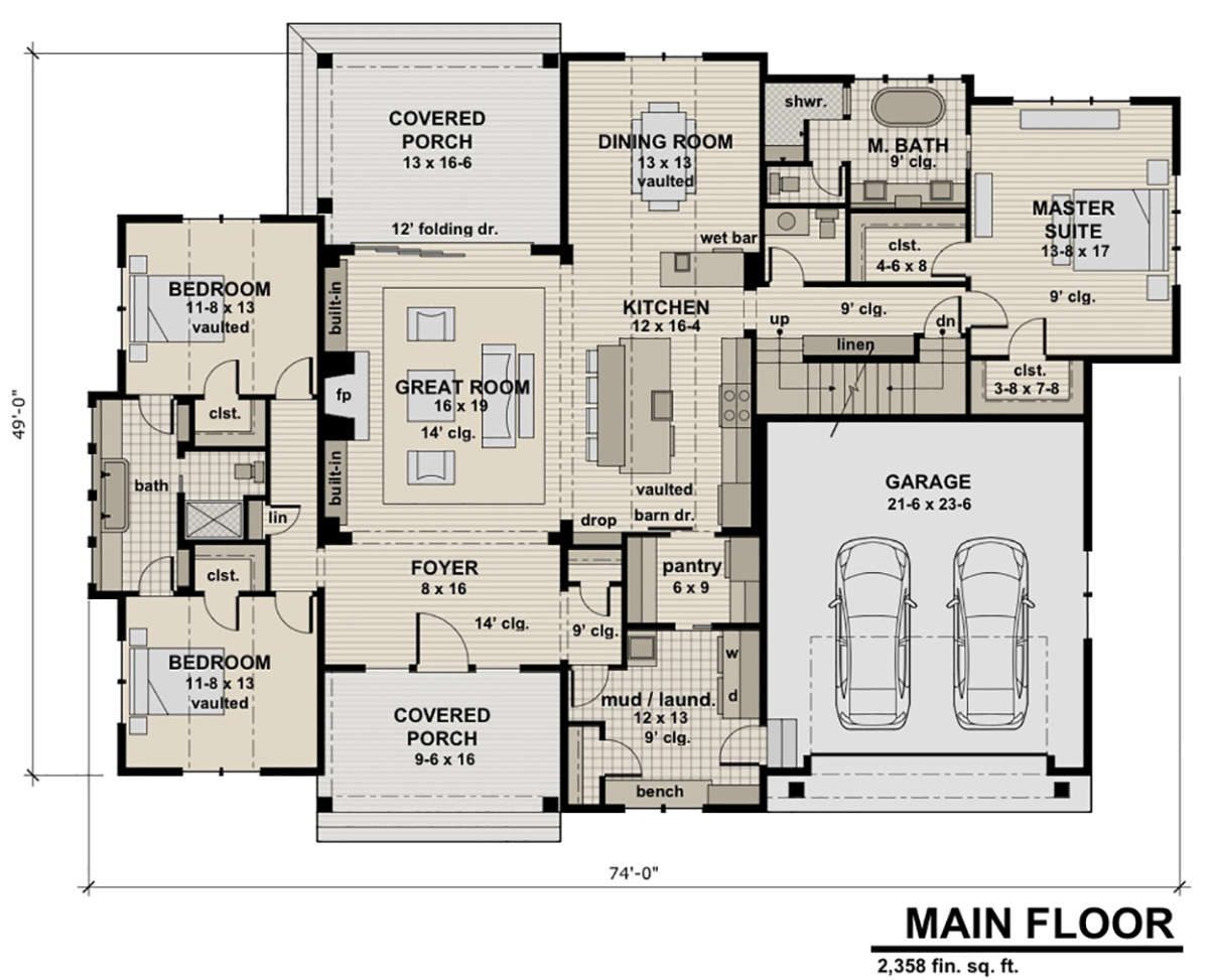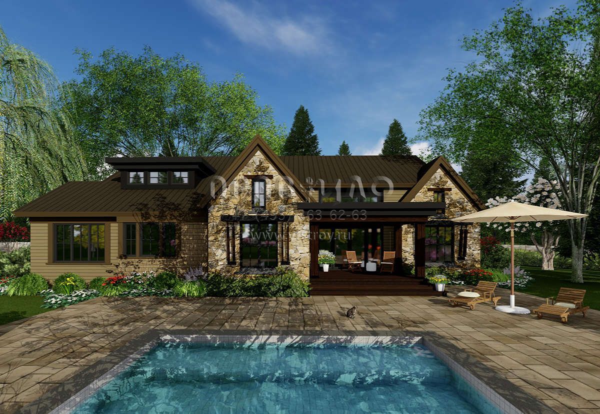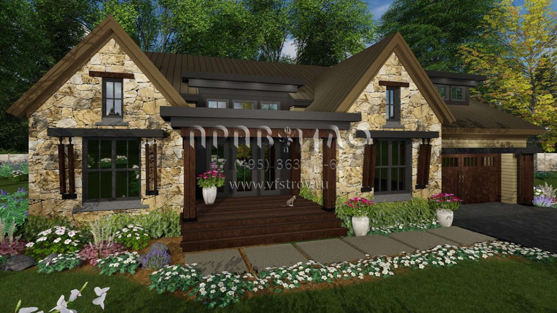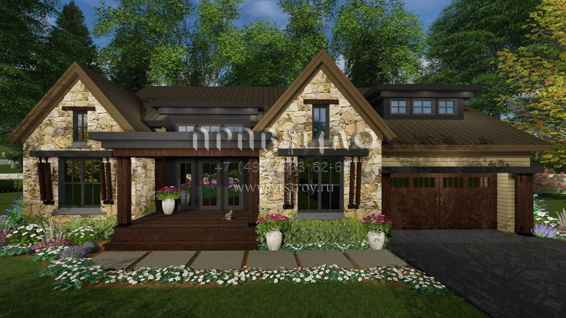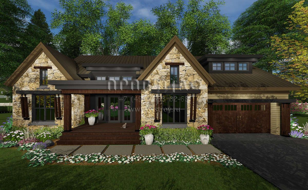 Проект одноэтажного дома с гаражом на две машины в стиле Шале S5-219 (098-00298)