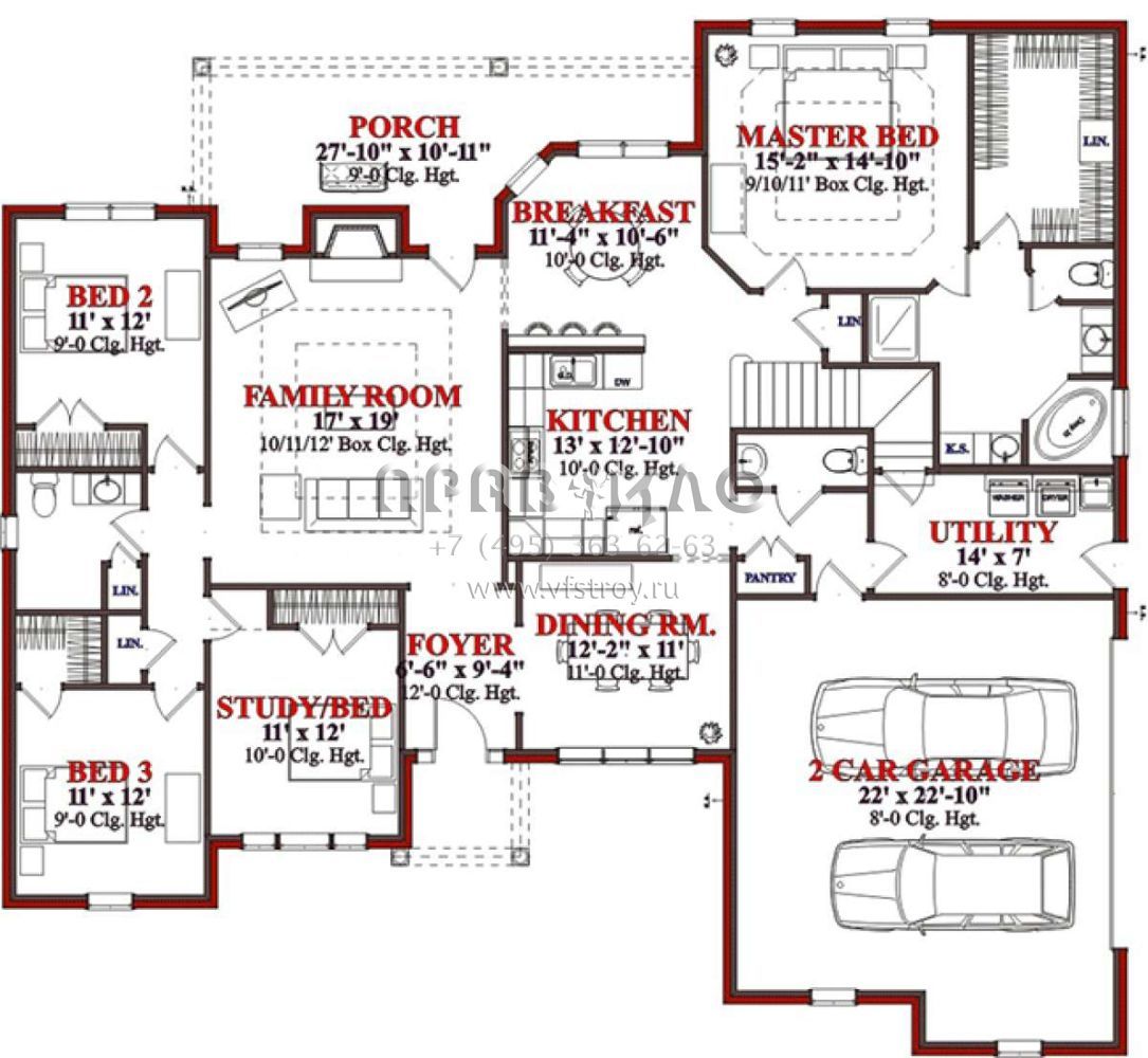Проект одноэтажного дома с гаражом на две машины в стиле Ранчо S5-219 (1070-00029)