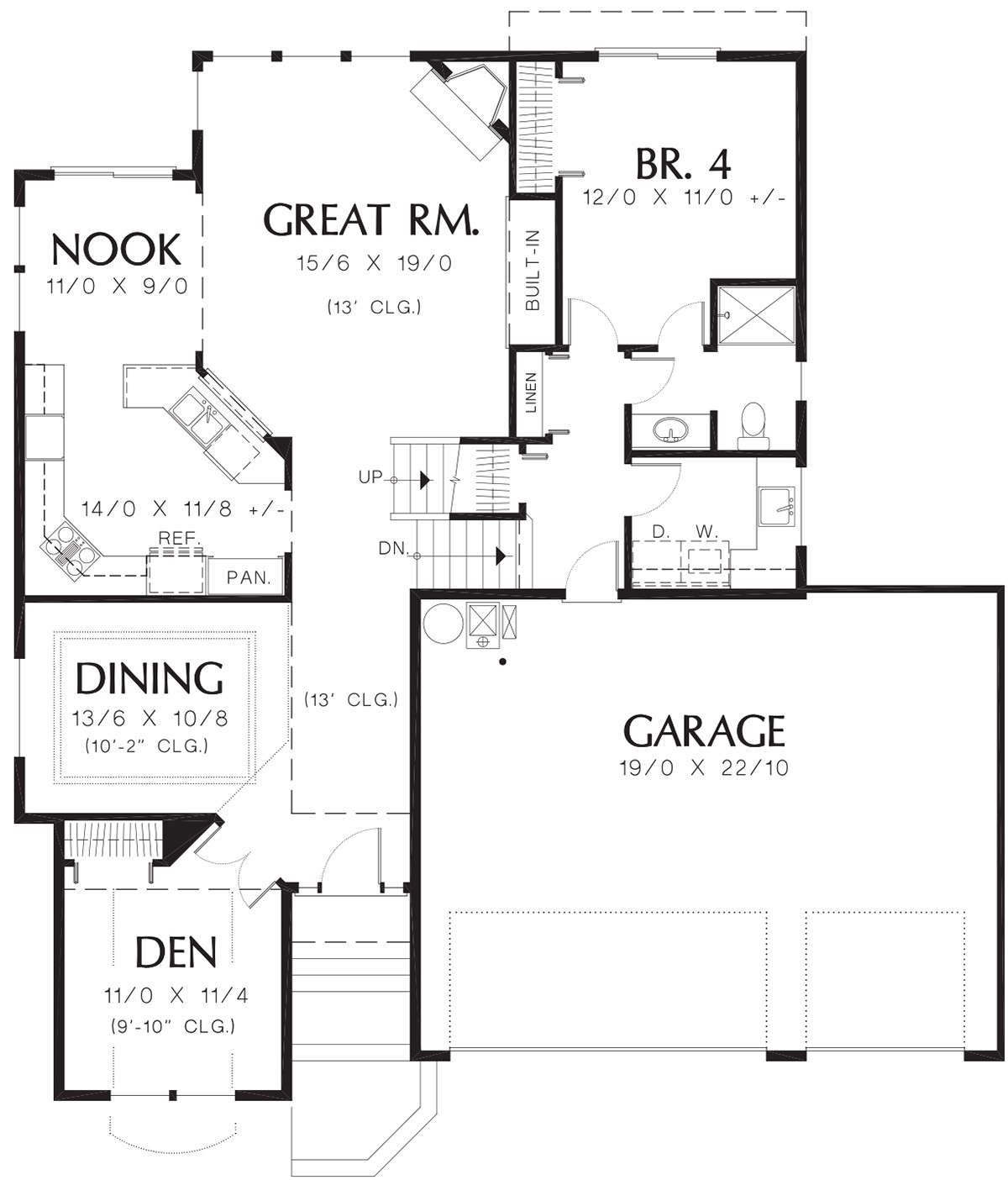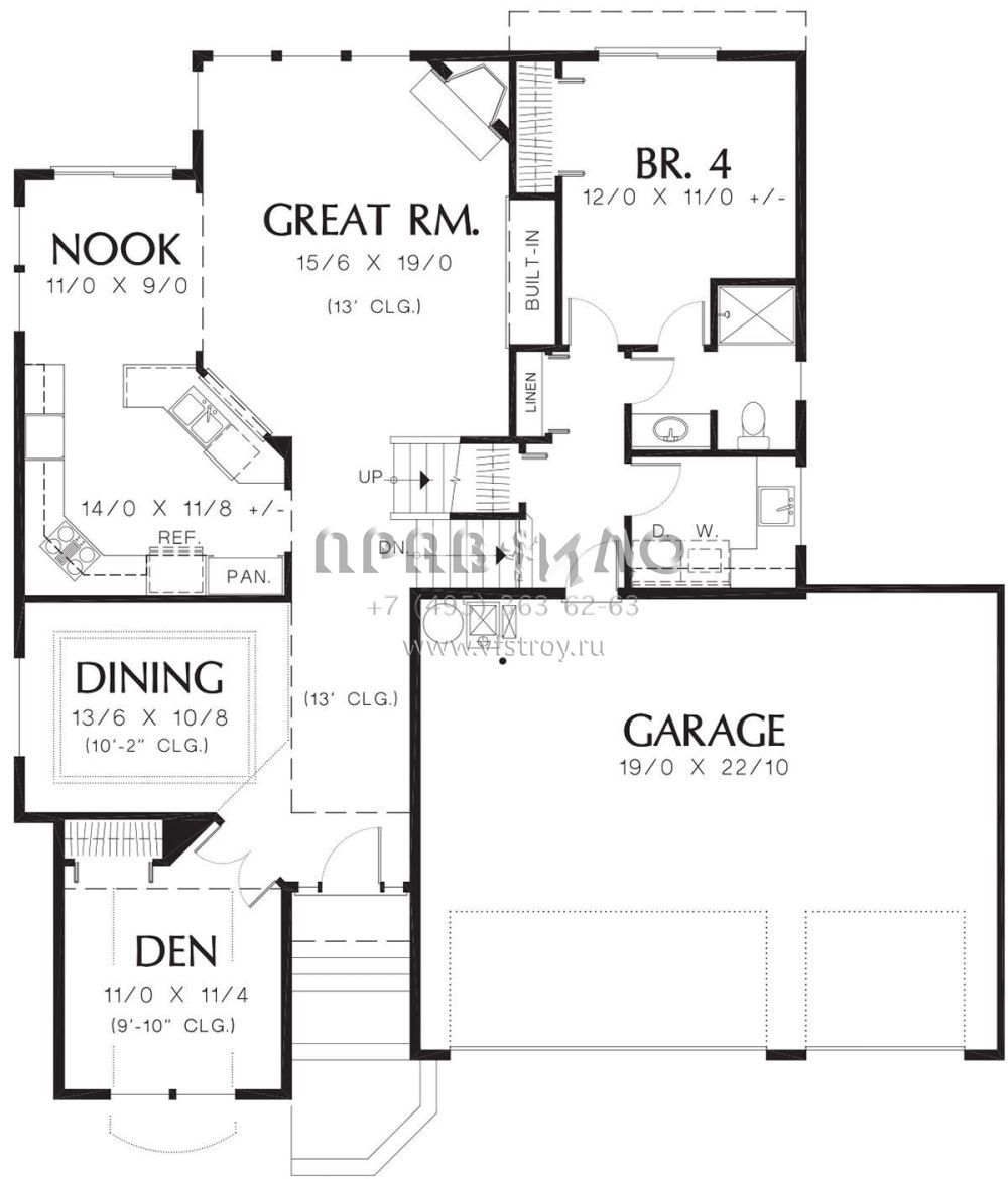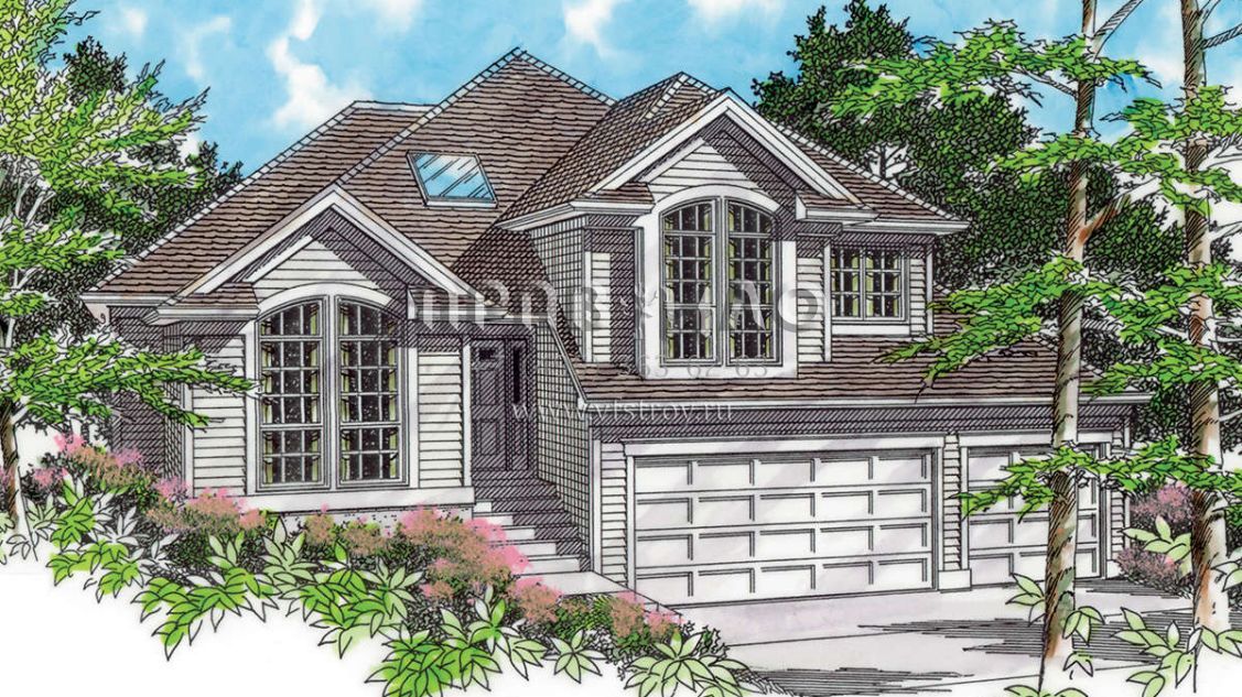 Проект двухэтажного дома с гаражом на три и более машин в стиле Ранчо S5-219 (2559-00619)