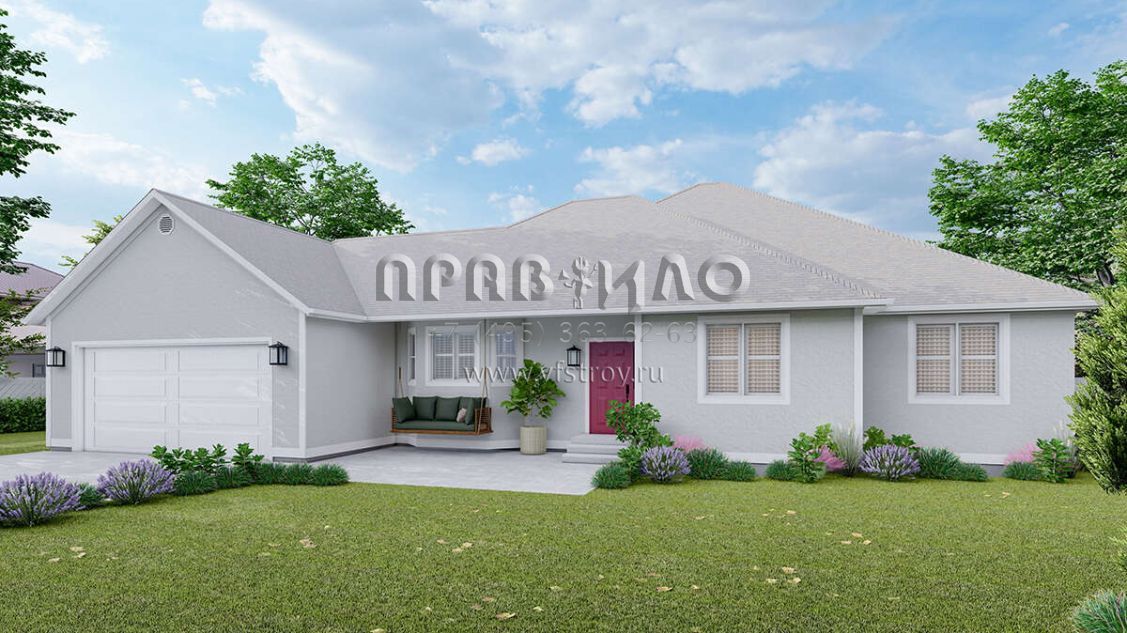 Большая площадь участка позволяет выбрать одноэтажный проект дома, особенно если в семье есть пожилые люди, инвалиды или маленькие дети.