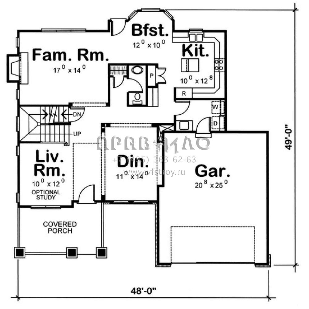 S5-219 (402-00862) Это иностранный проект, для которого требуется адаптация под нормы, действующие в Российской Федерации. Вы видите проект дома в американском стиле. В этом доме сочетаются черты сельской постройки и аскетичность лофта. Внутри жильцы смогут проводить время с максимальным комфортом. Обратим внимание, что сейчас на планировках все размеры представлены в футах. Для перевода в метры вам необходимо значение в футах умножить на 0,3048.