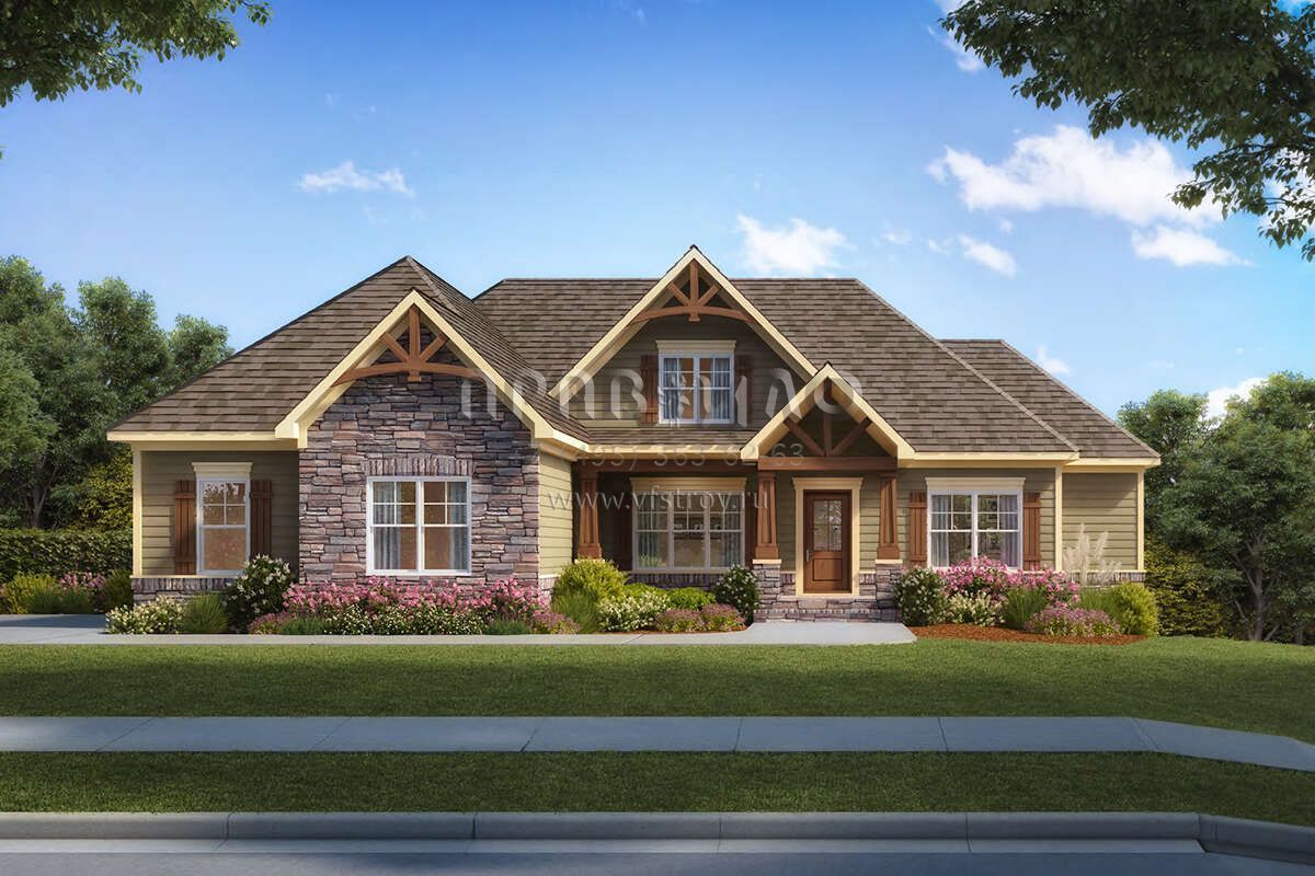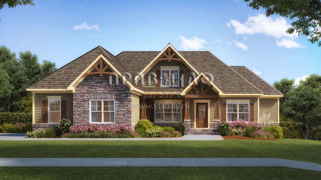 Проект одноэтажного дома с гаражом на две машины в американском стиле S5-219 (6082-00196)