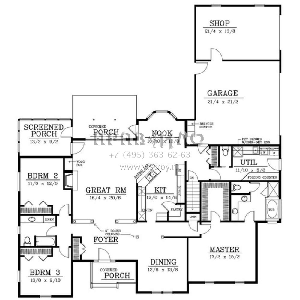 Проект одноэтажного дома с гаражом на три и более машин в стиле Ранчо S5-219 (692-00179)