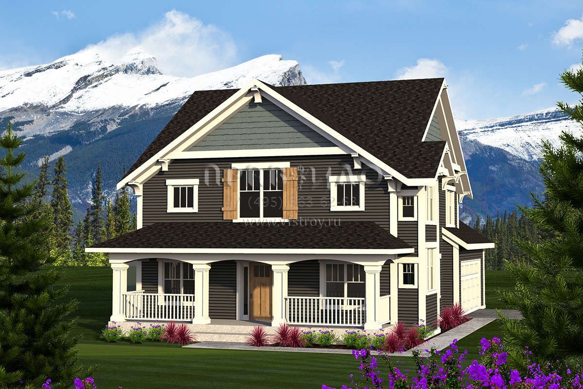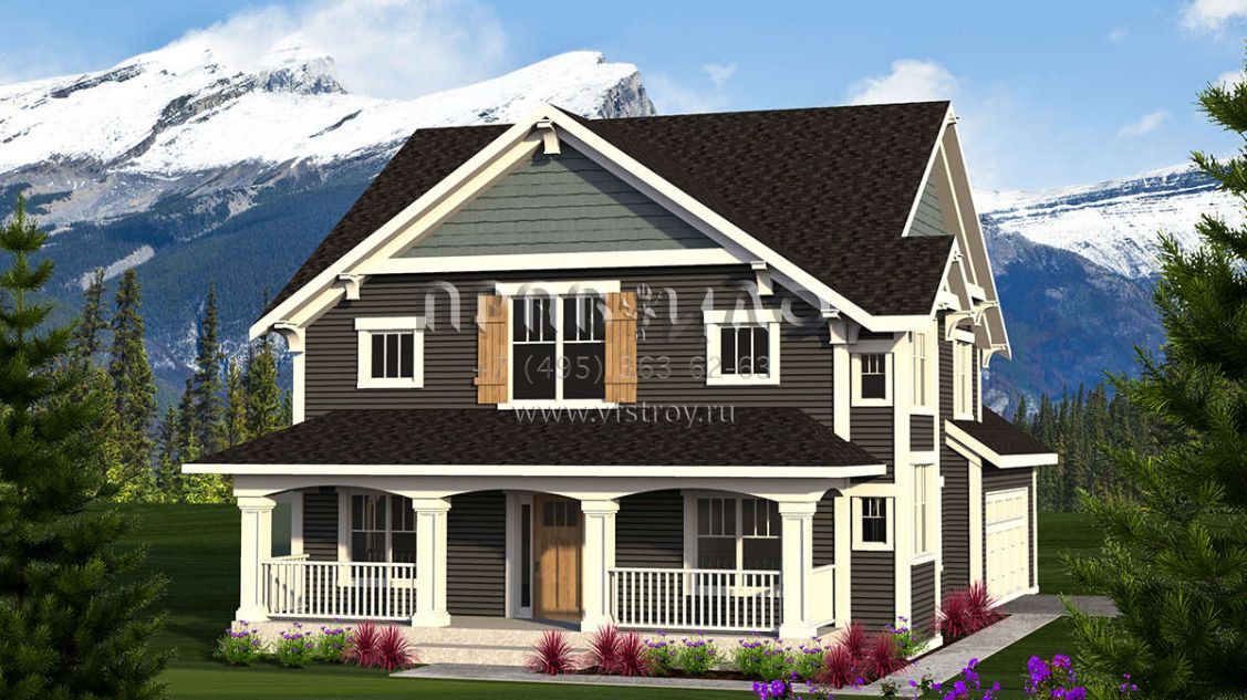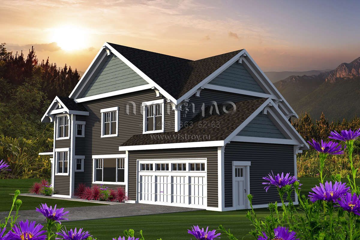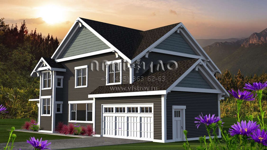 Проект двухэтажного дома с гаражом на две машины в американском стиле S5-220 (1020-00099)