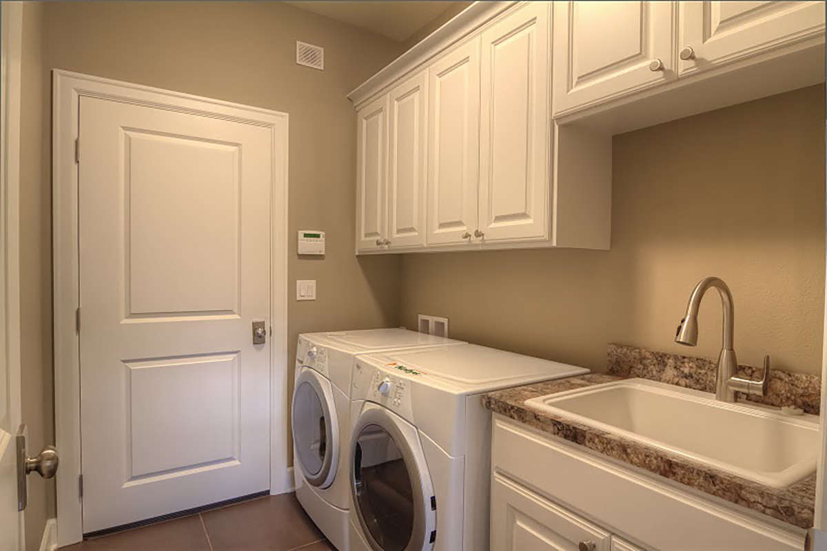 Двухэтажный проект дома позволяет рационально распорядиться площадью участка небольшого размера или узкой формы. На первом этаже находятся общие комнаты (гостиная/столовая, кухня, подсобные и технические помещения), на втором — спальни членов семьи.