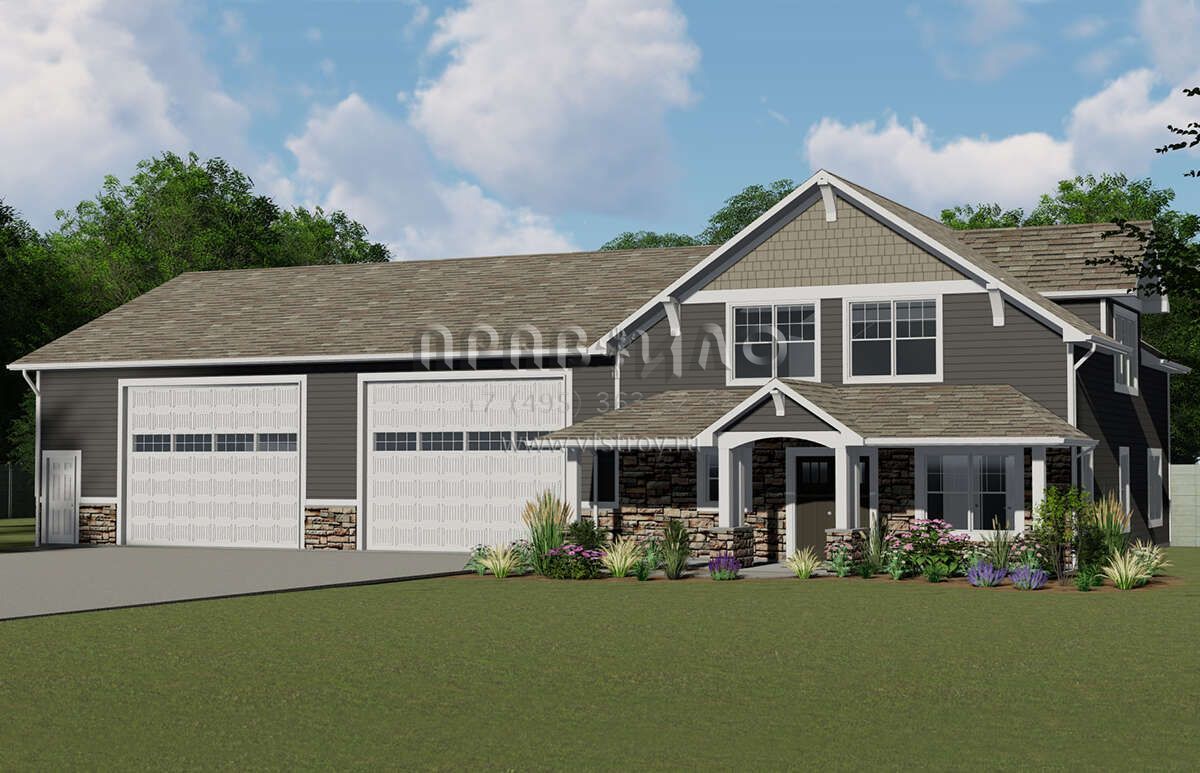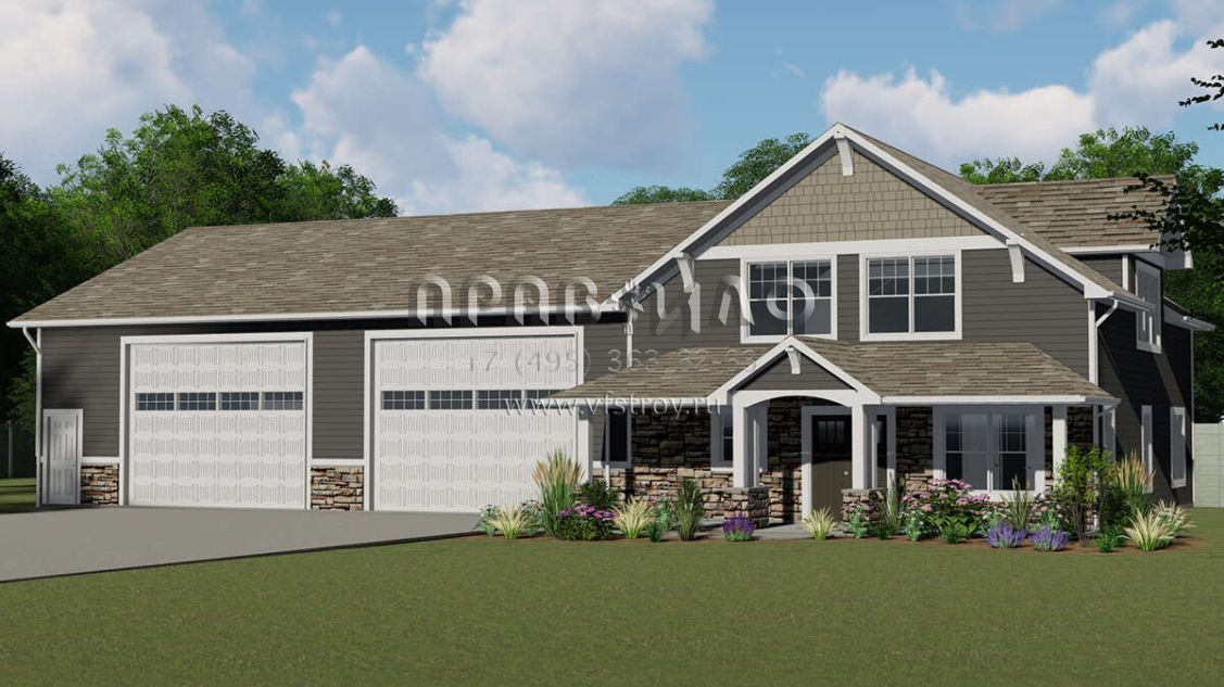Проект двухэтажного дома с гаражом на три и более машин в американском стиле S5-220 (5032-00005)