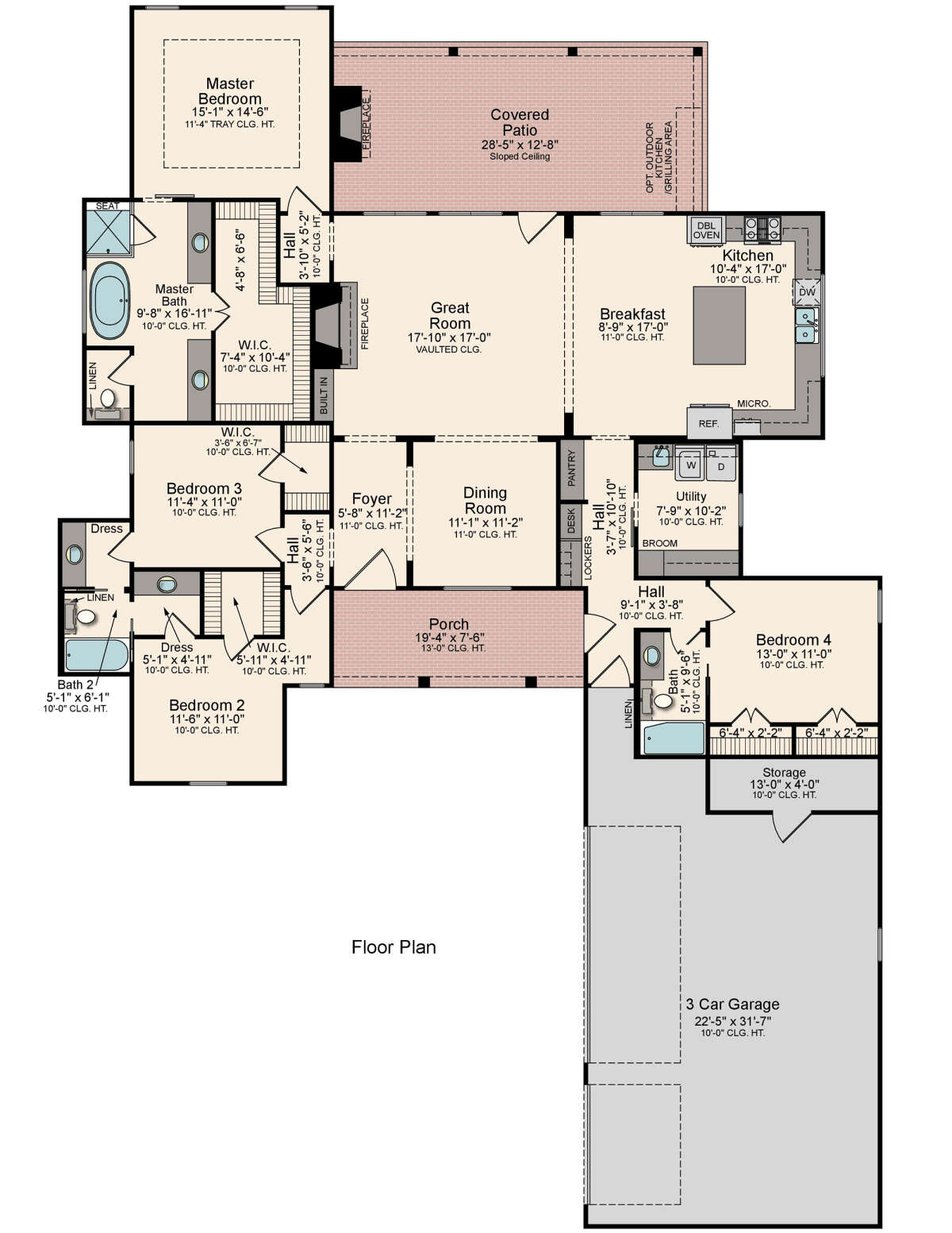 Проект одноэтажного дома с гаражом на три и более машин в стиле Ранчо S5-220 (5995-00027)