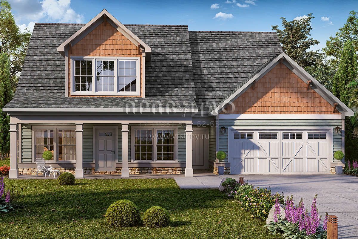 Проект двухэтажного дома с гаражом на две машины в стиле Ранчо S5-220 (6082-00159)