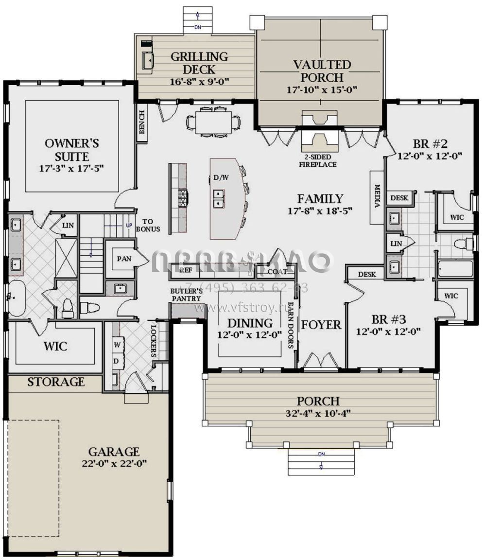 Поскольку этот проект разрабатывался иностранными архитекторами, для строительства дома требуется переработка проекта под действующие в России нормы. Данные визуализации проекта представлены для ознакомления с концепцией проекта. Проект разработан американским архитектурным бюро и представлен America's Best House Plans.