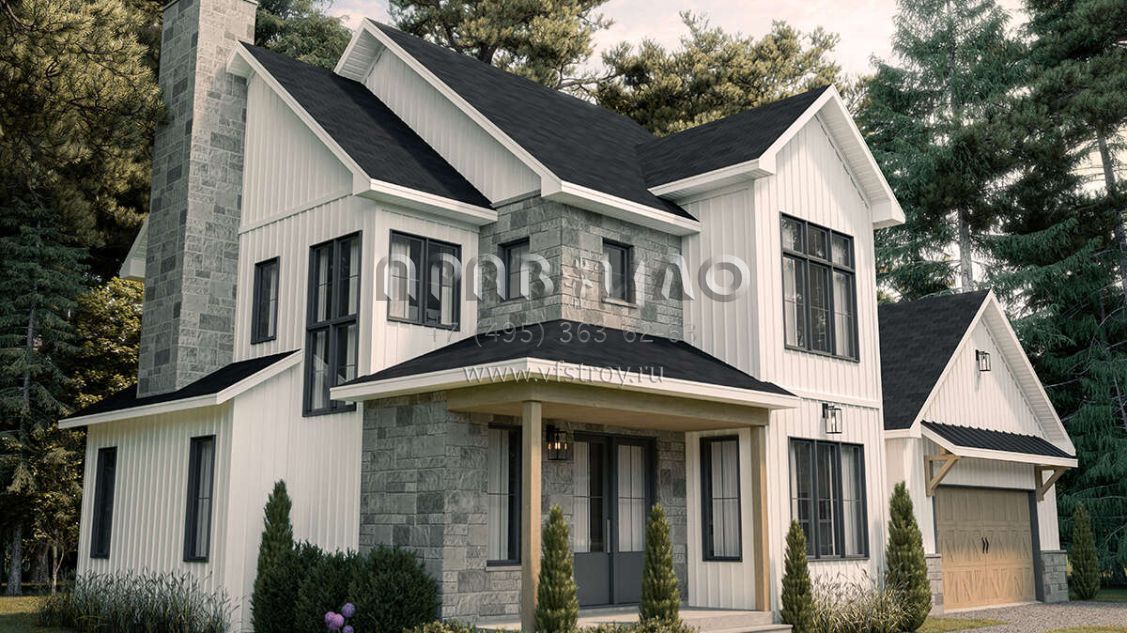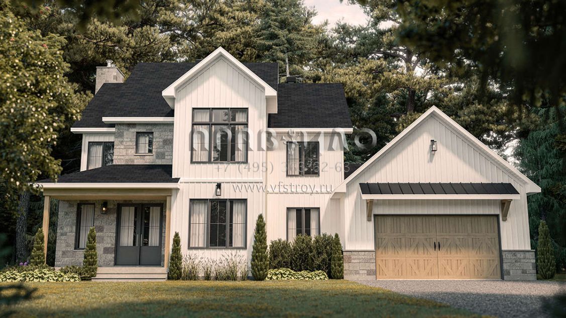 Проект двухэтажного дома с гаражом на две машины в современном стиле S5-221 (034-01293)