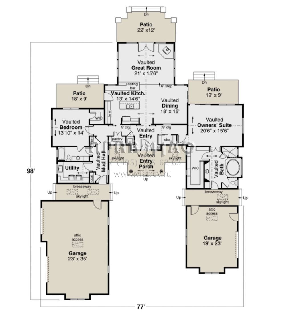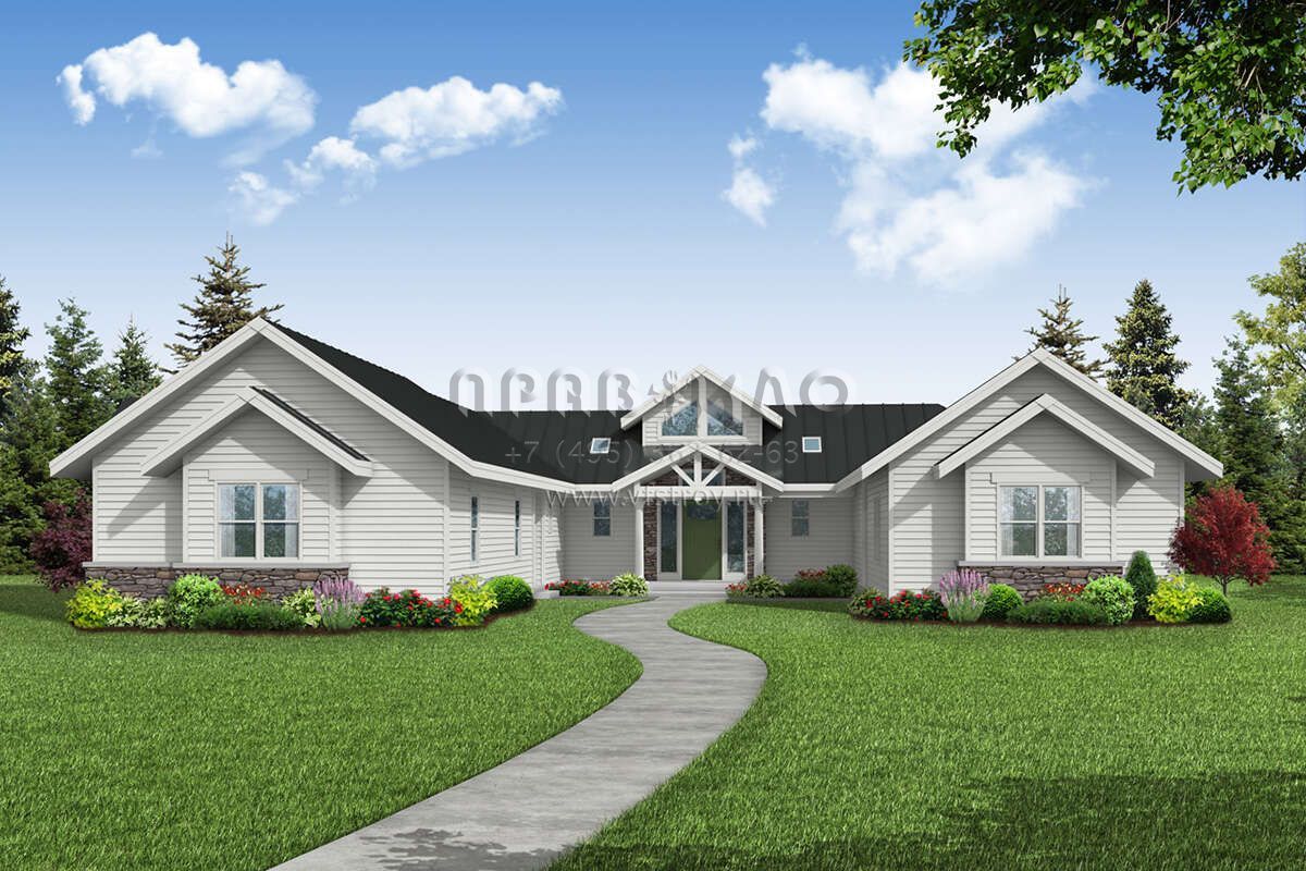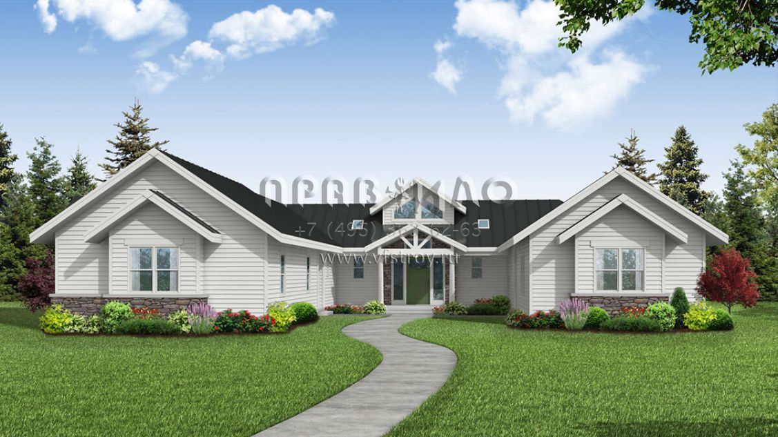 Проект одноэтажного дома с гаражом на три и более машин в американском стиле S5-221 (035-01021)