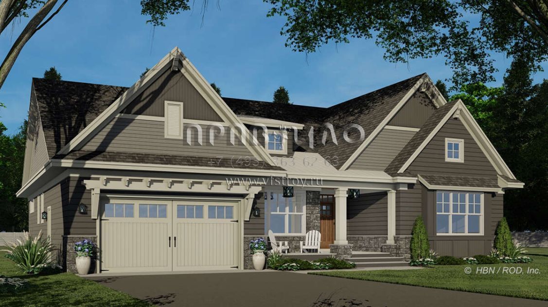 Проект одноэтажного дома с гаражом на две машины в американском стиле S5-221 (098-00398)
