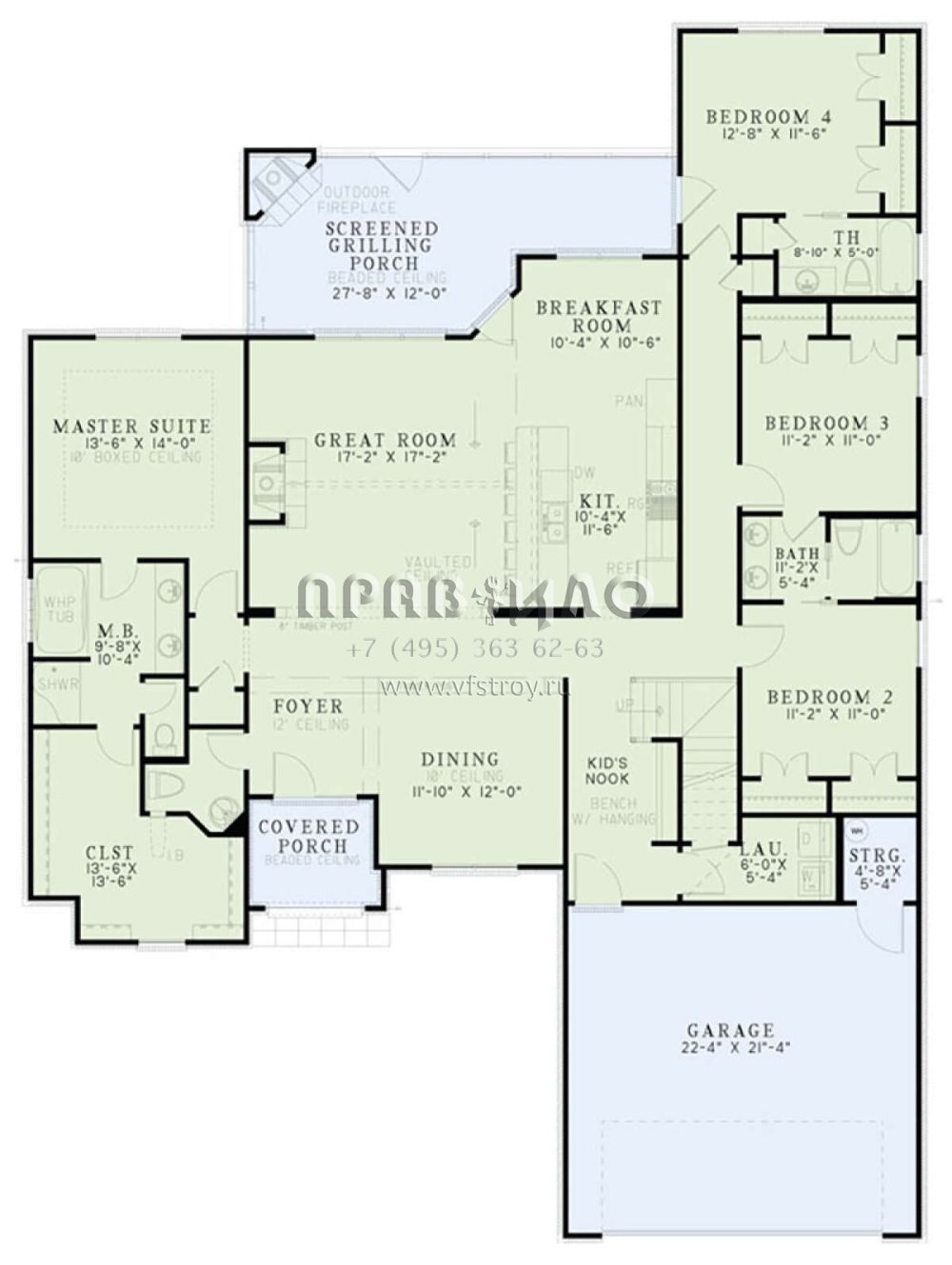 Поскольку этот проект разрабатывался иностранными архитекторами, для строительства дома требуется переработка проекта под действующие в России нормы. Данные визуализации проекта представлены для ознакомления с концепцией проекта. Проект разработан американским архитектурным бюро и представлен America's Best House Plans.