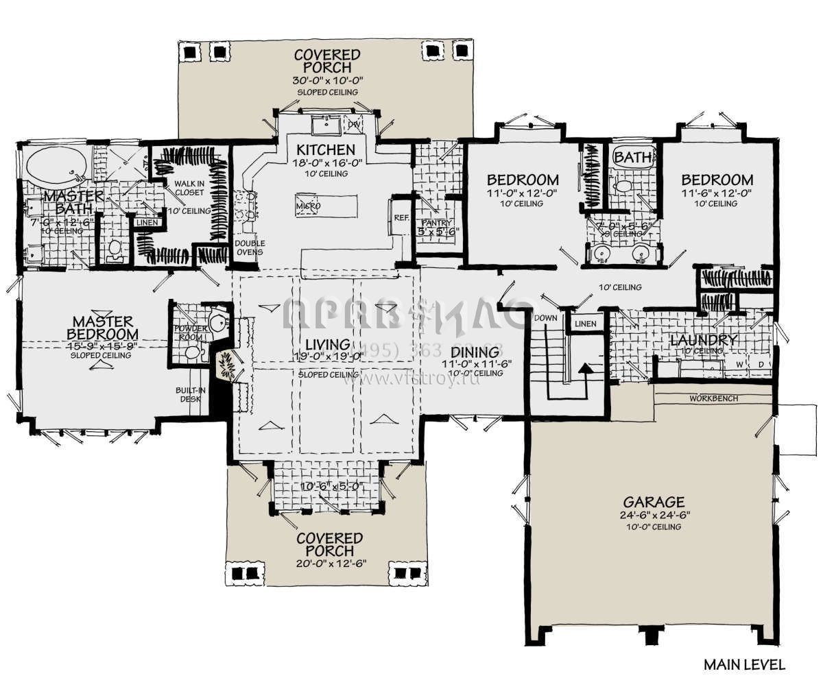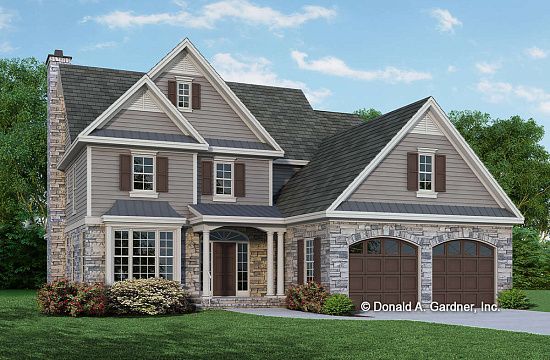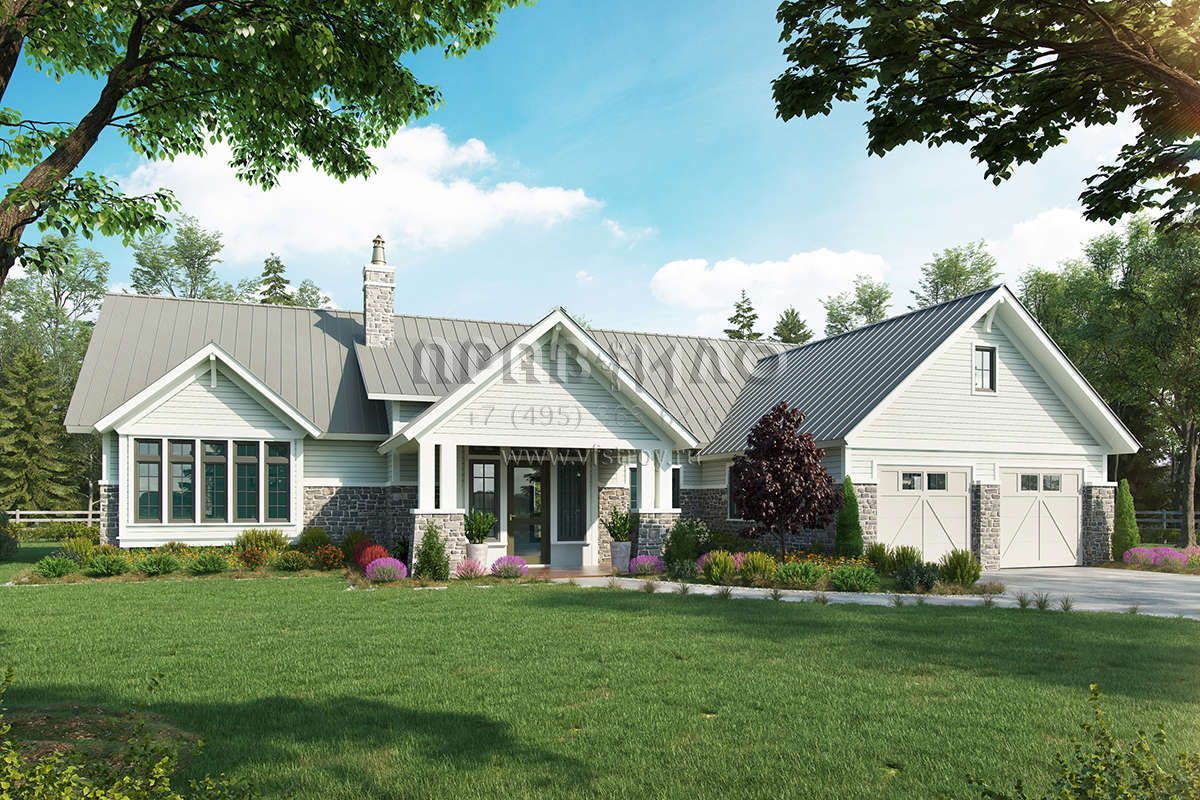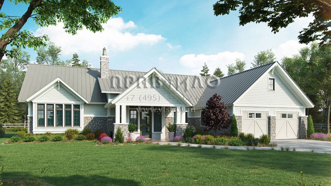 Проект двухэтажного дома с гаражом на две машины в стиле Ранчо S5-221 (1907-00046)