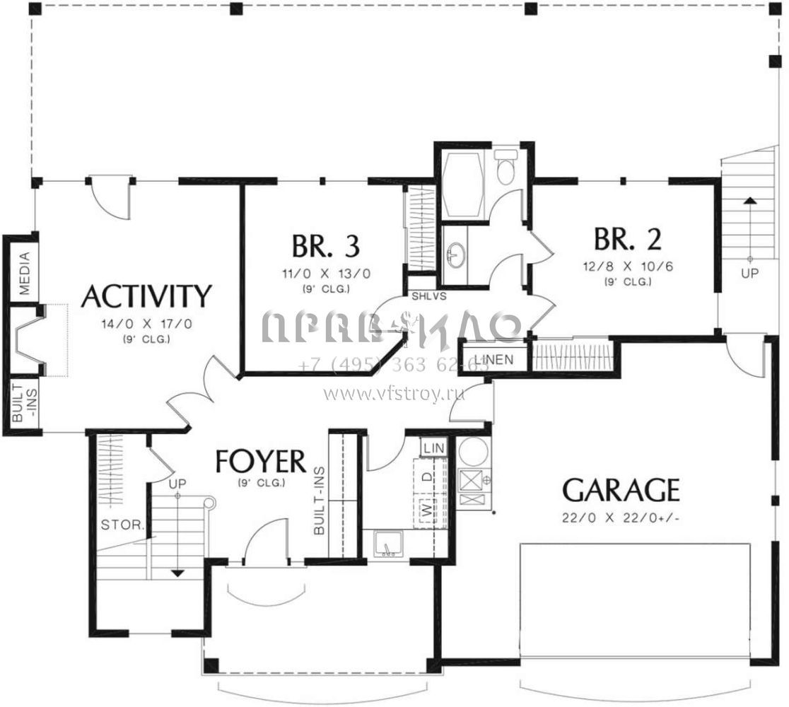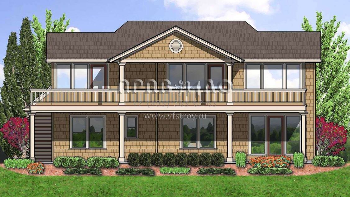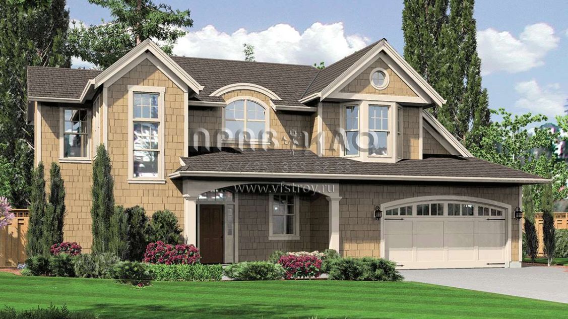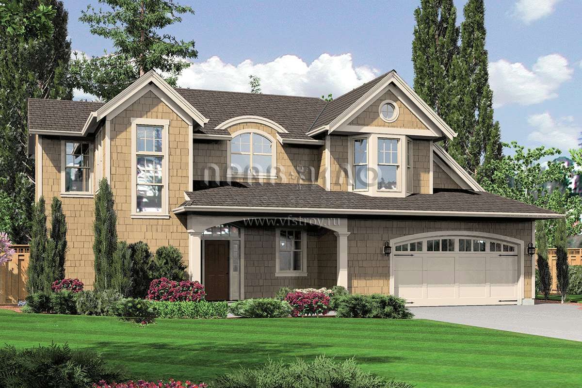 Проект двухэтажного дома с гаражом на две машины в стиле Ранчо S5-221 (2559-00395)
