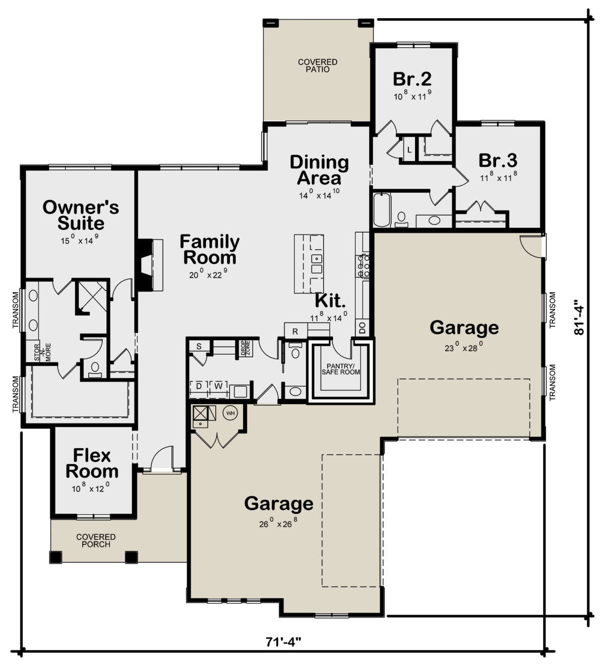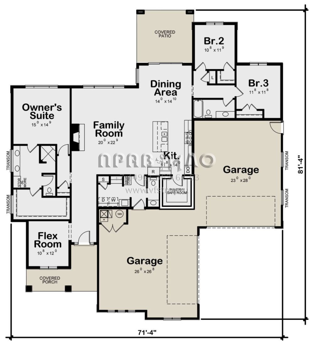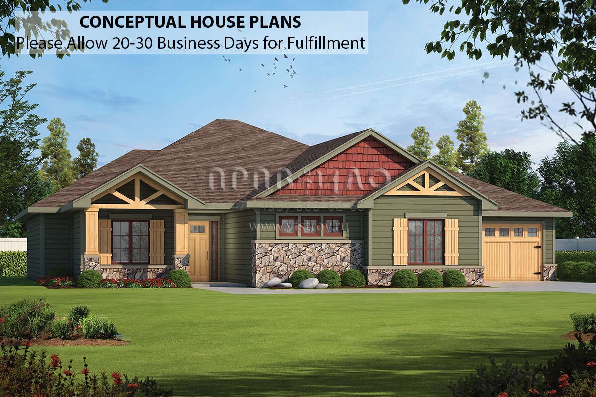 Проект одноэтажного дома с гаражом на три и более машин в американском стиле S5-221 (402-01766)