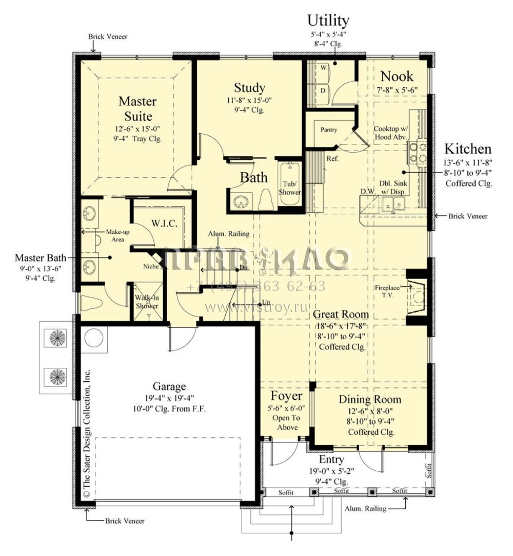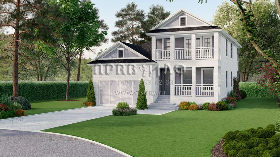 Проект двухэтажного дома с гаражом на две машины в стиле Ранчо S5-221 (8436-00117)
