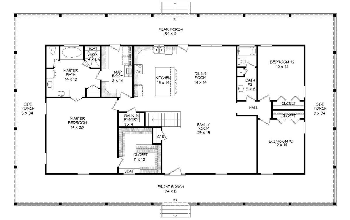 S5-221 (940-00103) Это иностранный проект, для которого требуется адаптация под нормы, действующие в Российской Федерации. Вы видите проект дома в стиле Ранчо. В этом доме сочетаются черты сельской постройки и аскетичность лофта. Внутри жильцы смогут проводить время с максимальным комфортом. Обратим внимание, что сейчас на планировках все размеры представлены в футах. Для перевода в метры вам необходимо значение в футах умножить на 0,3048.