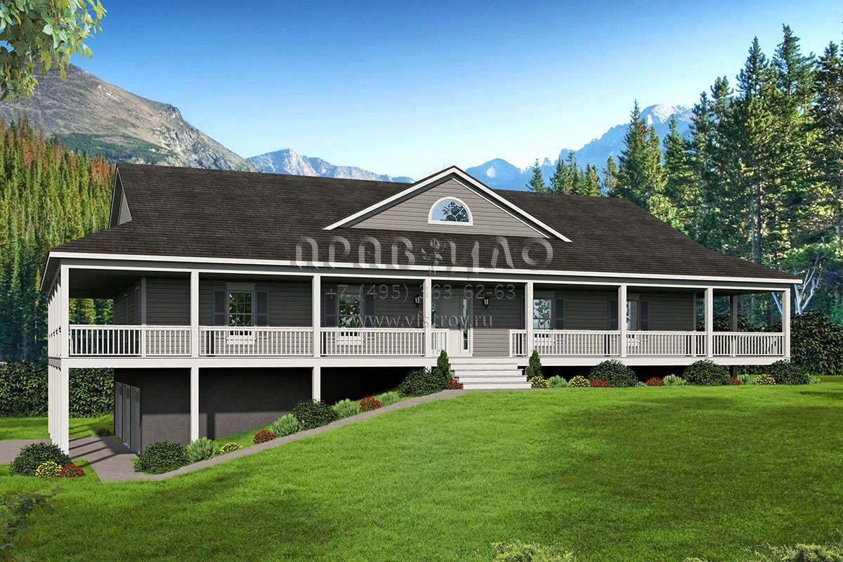 Большая площадь участка позволяет выбрать одноэтажный проект дома, особенно если в семье есть пожилые люди, инвалиды или маленькие дети.