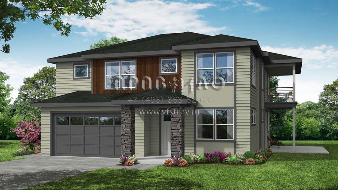 Проект двухэтажного дома с гаражом на две машины в современном стиле S5-222 (035-00902)