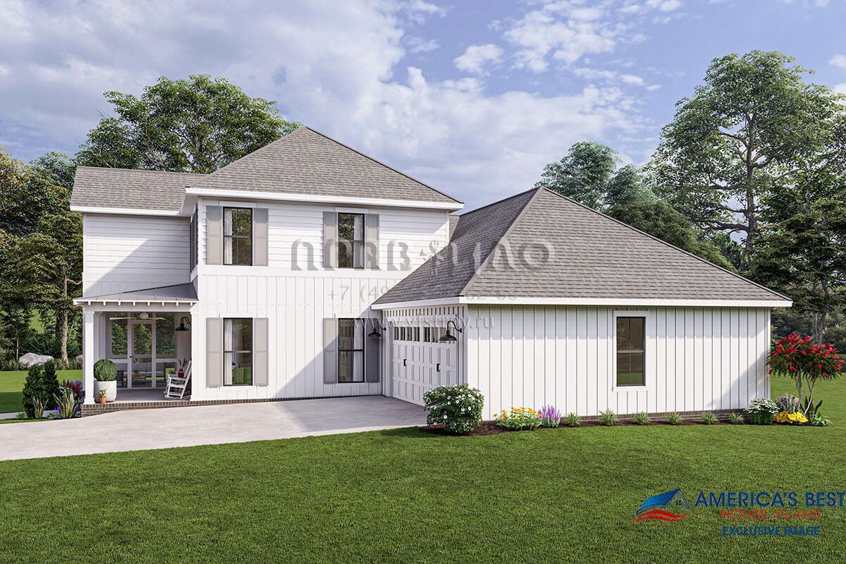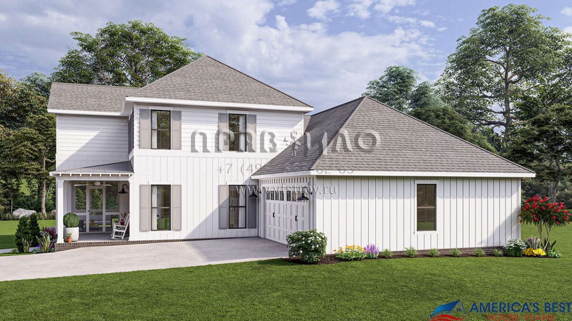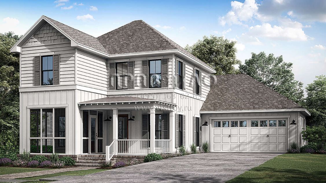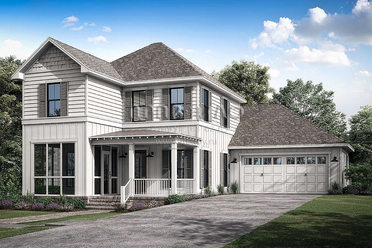 Проект двухэтажного дома с гаражом на две машины в стиле Ранчо S5-222 (041-00277)