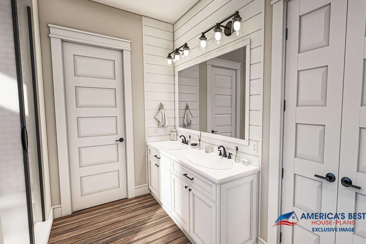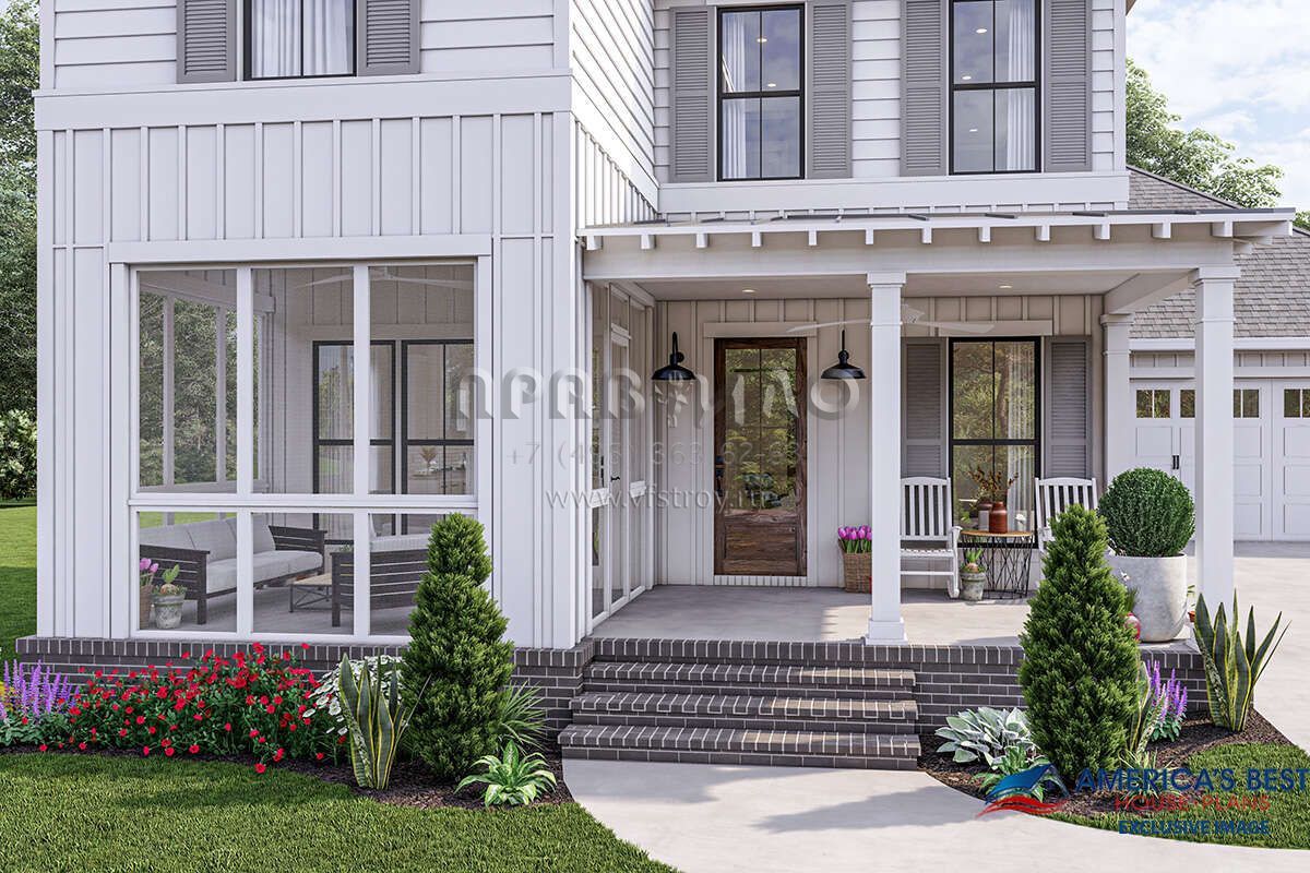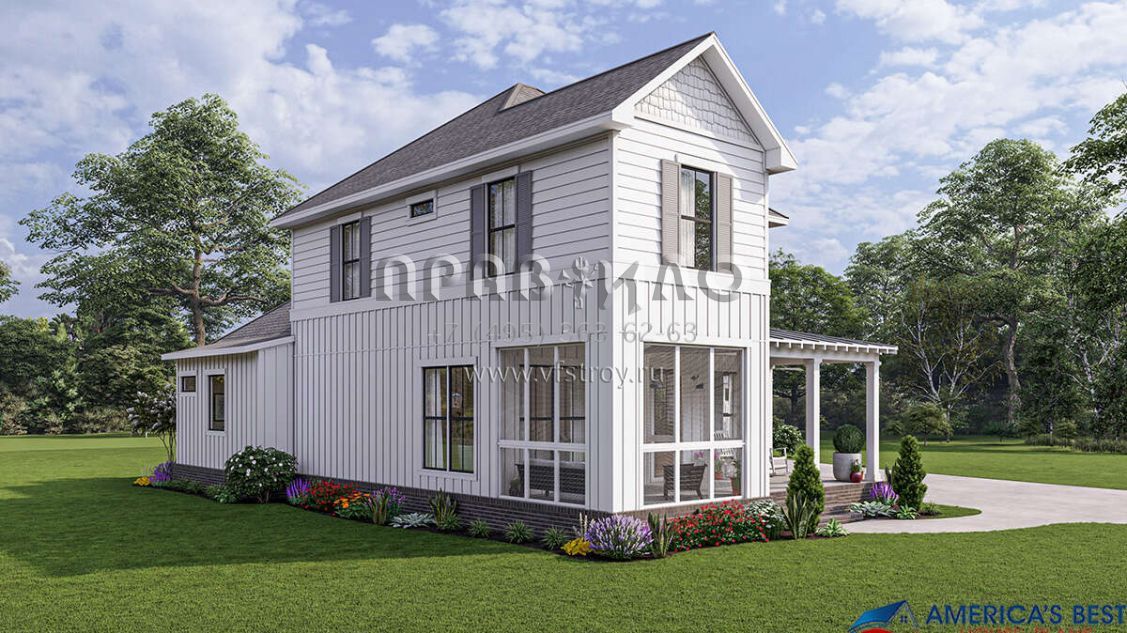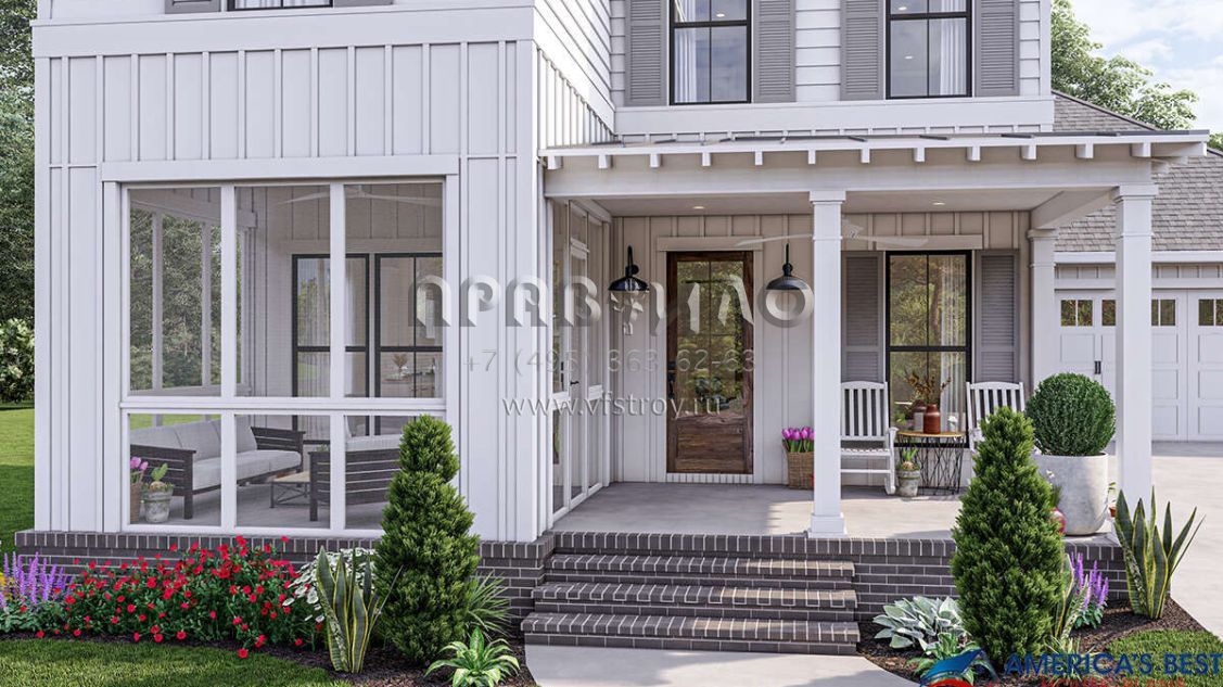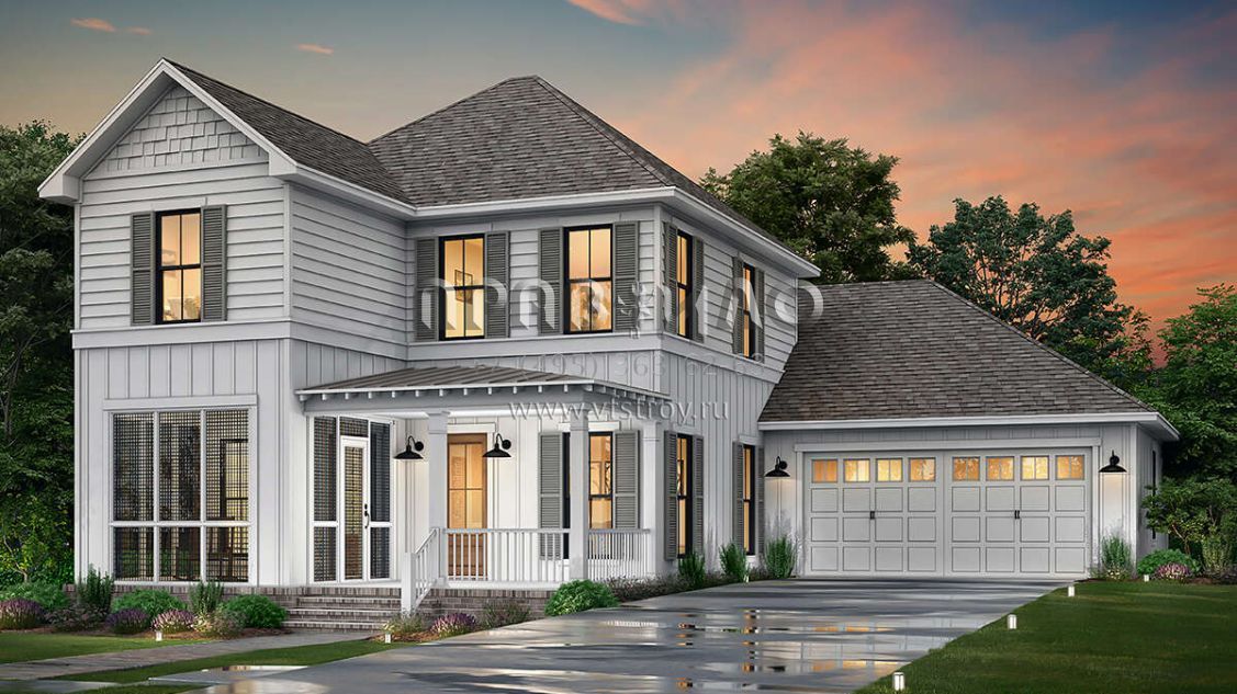 Проект двухэтажного дома с гаражом на две машины в стиле Ранчо S5-222 (041-00277)