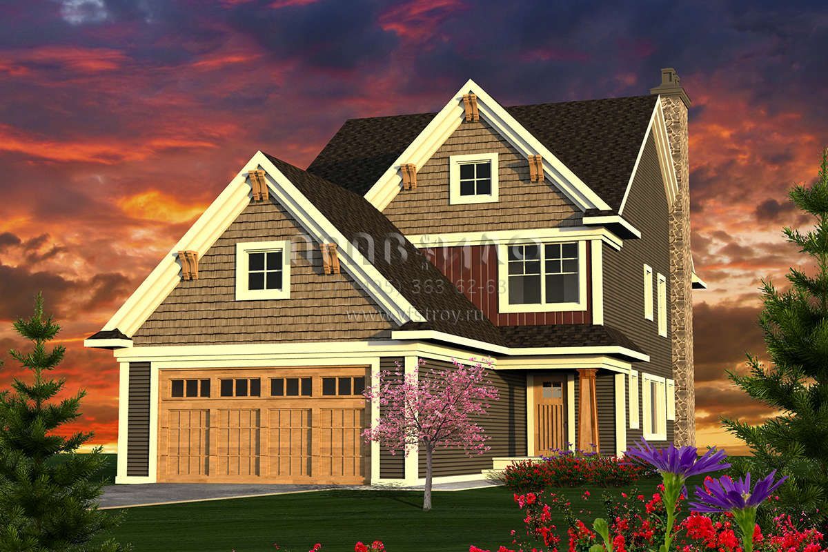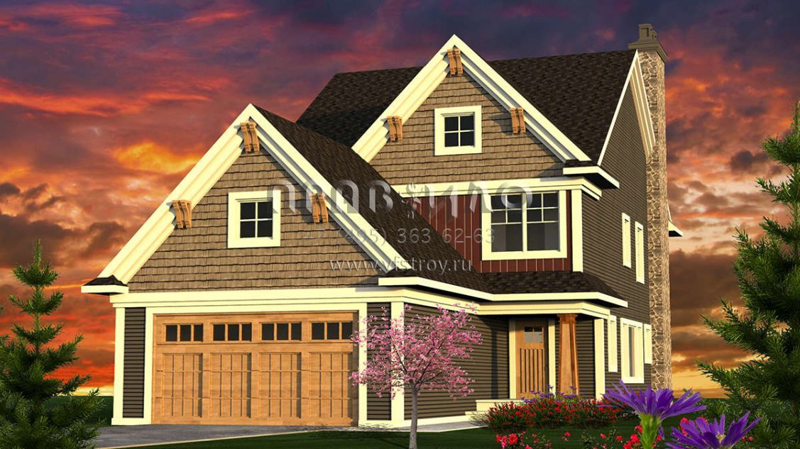 Проект двухэтажного дома с гаражом на две машины в американском стиле S5-222 (1020-00100)